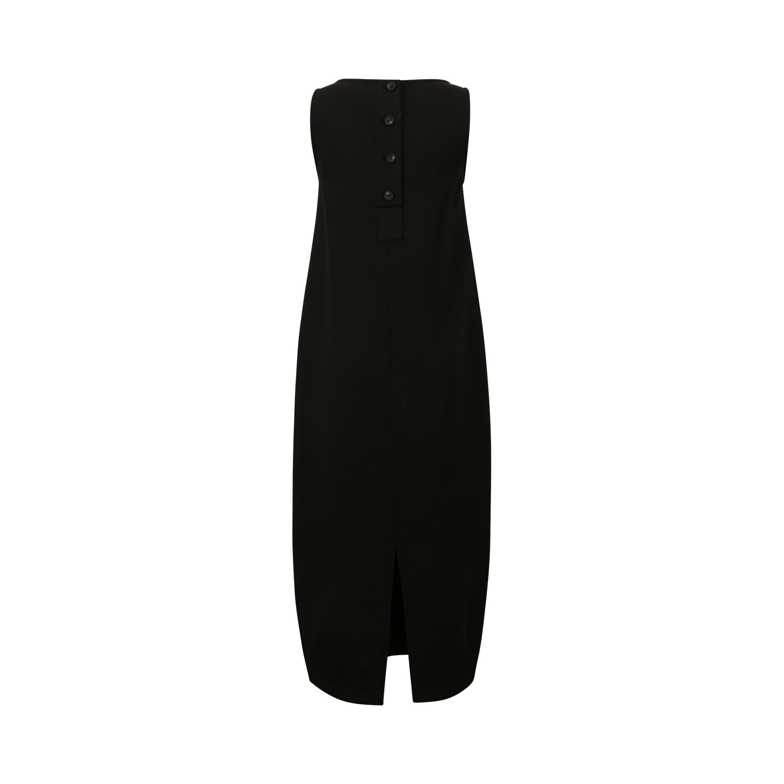 Abito ALBIO nero di MM MAX MARA in cotone con scollo tondo, giromaniche, chiusura con bottoni posteriori, scollo posteriore e tasche a filetto.