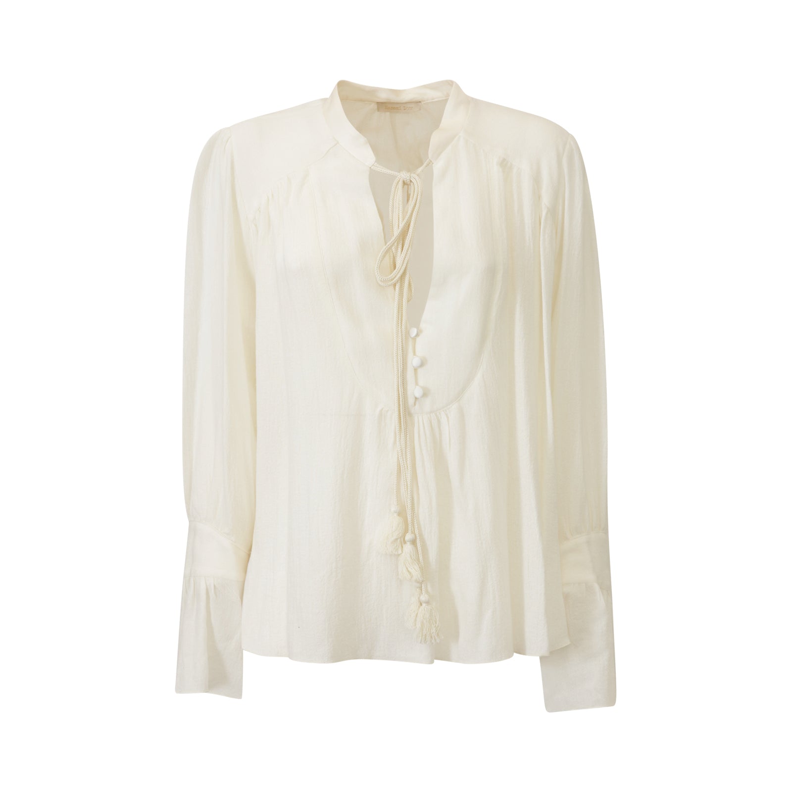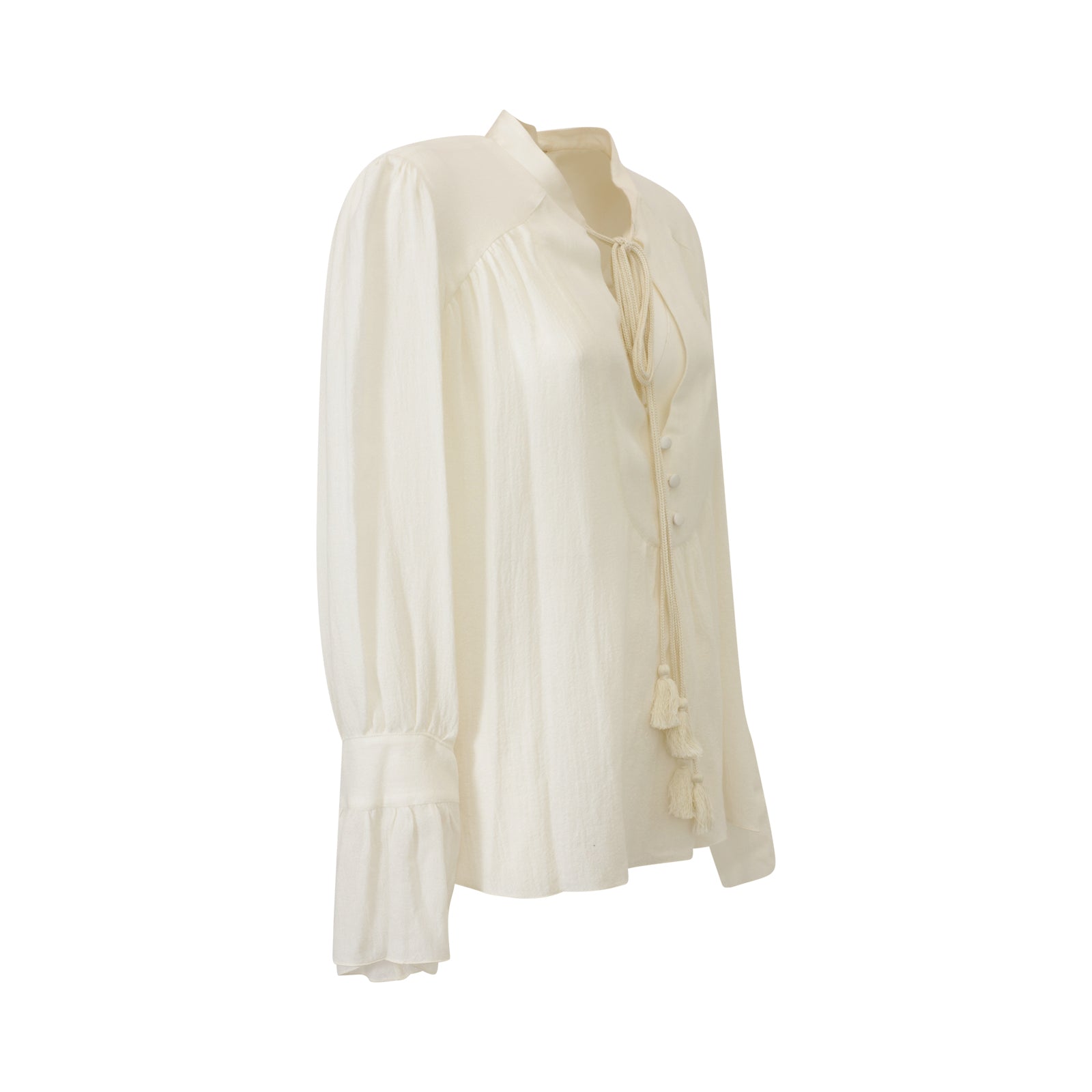 Blusa TYRA avorio di HANAMI D'OR in misto lana con scollo a v, manica ampia.