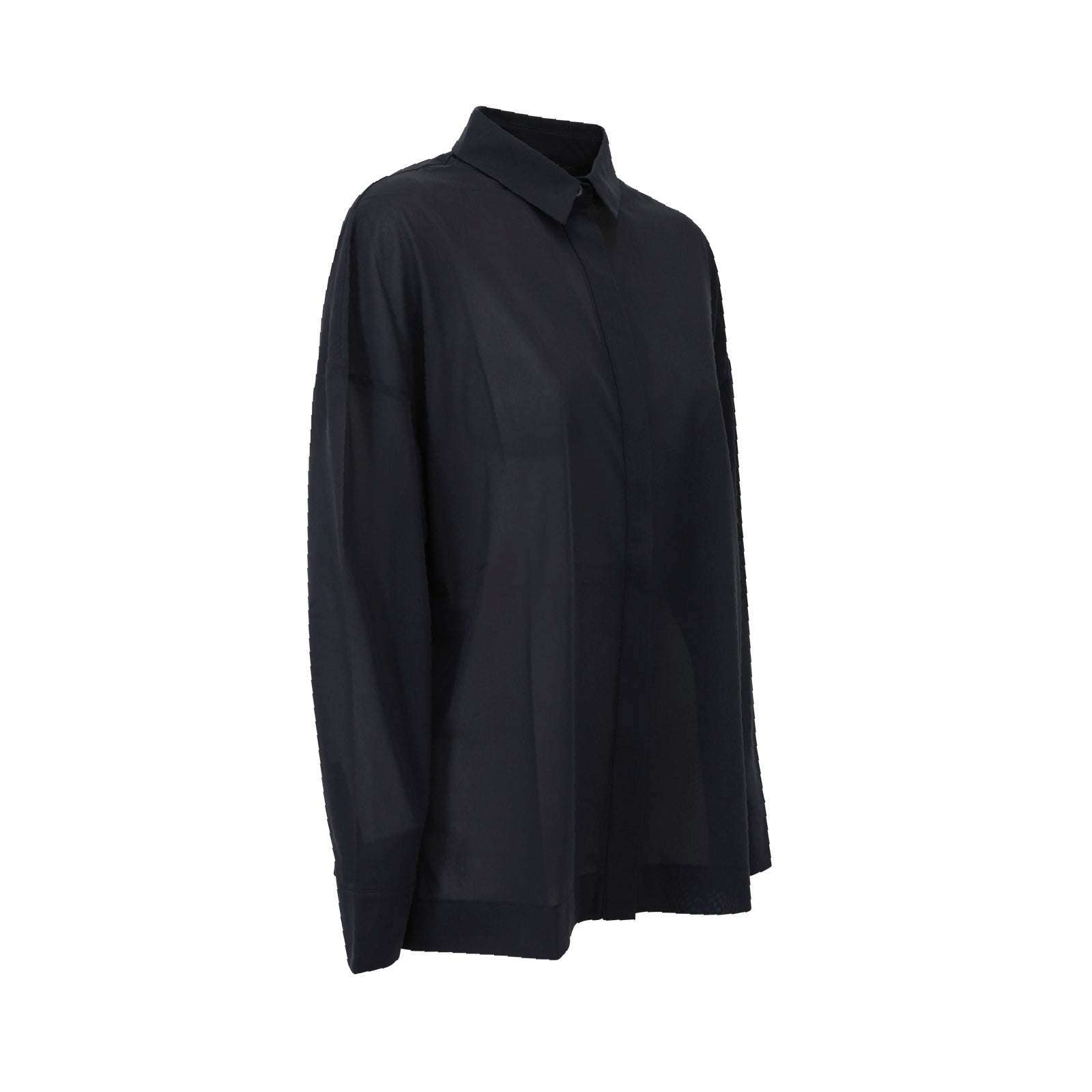 Camicia OZIOSO blu di MM MAX MARA in poliestere con chiusura con bottoni nascosti, fit over.