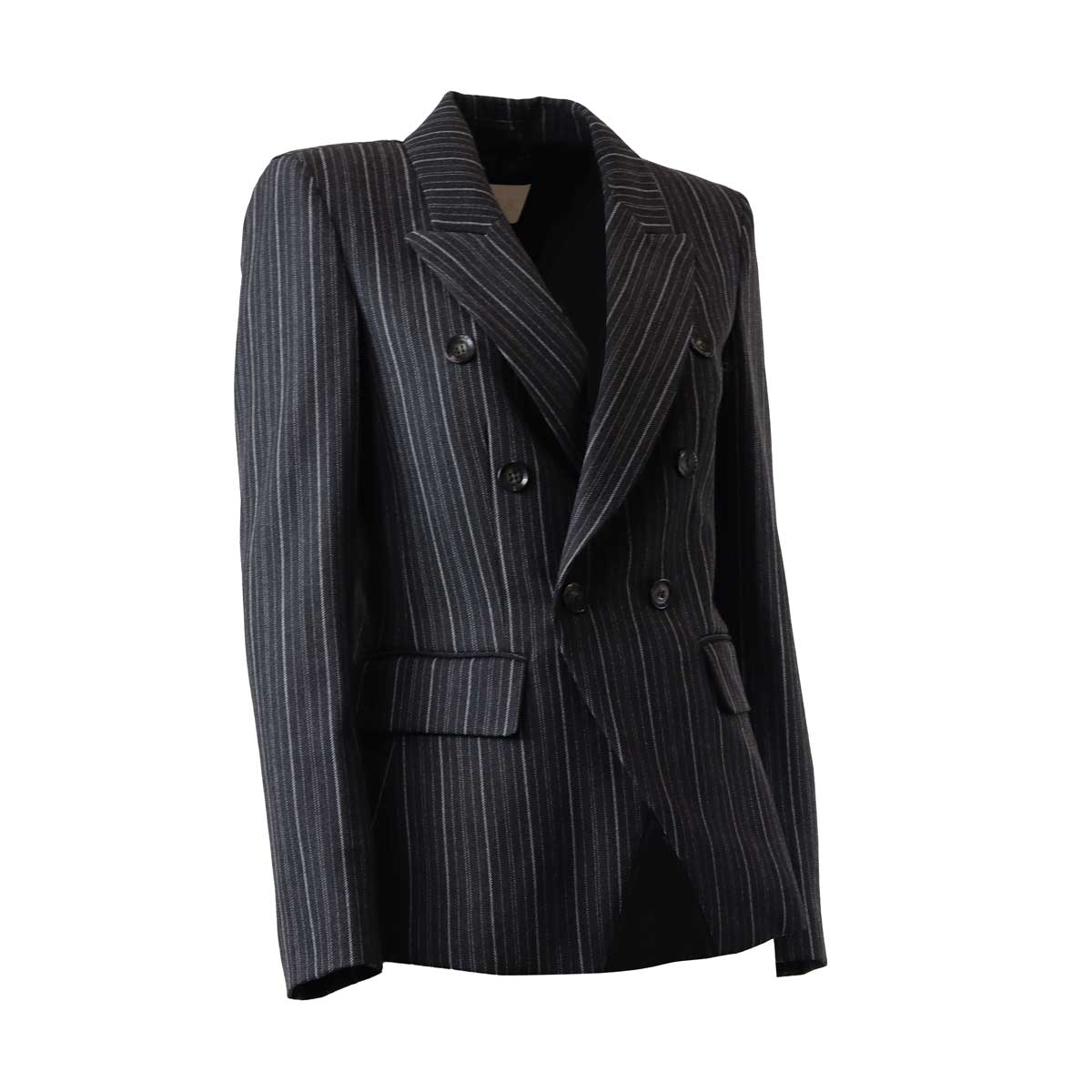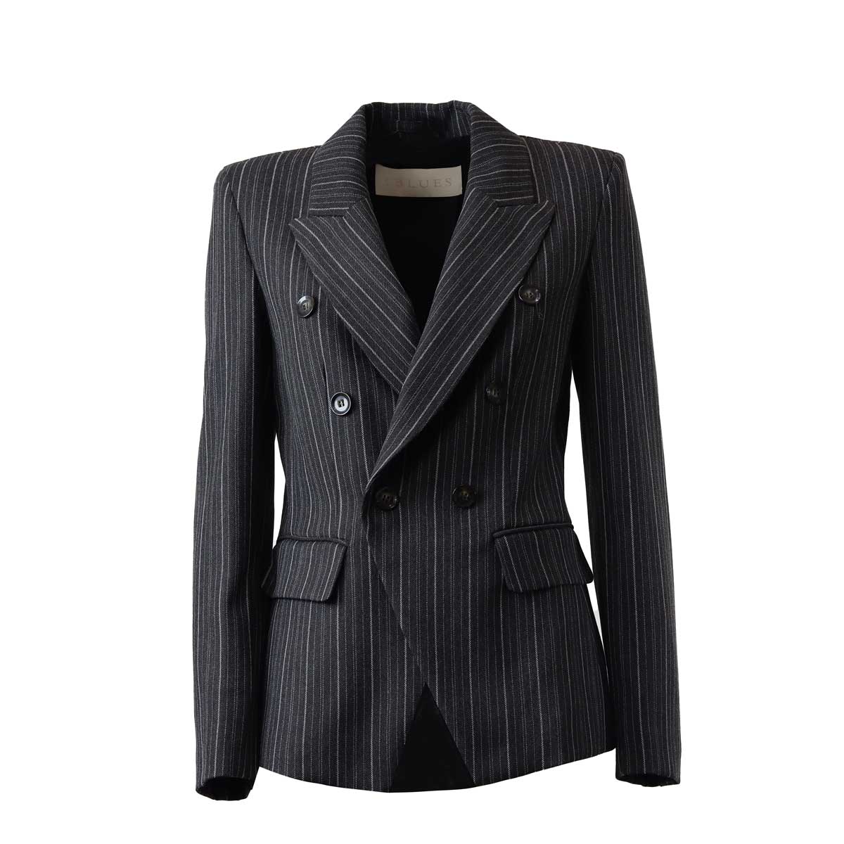 Giacca DRAGHI grigia di IBLUES in poliestere con doppio petto, collo a rever, maniche lunghe con spacchi sui polsi, tasche a patta e spacco posteriore. Linea sfiancata e fit aderente.