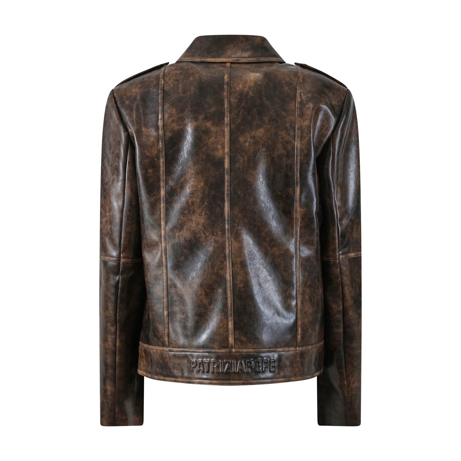 Chiodo oversize marrone di PATRIZIA PEPE in tessuto spalmato con vestibilità oversize, scollo con rever, maniche lunghe.