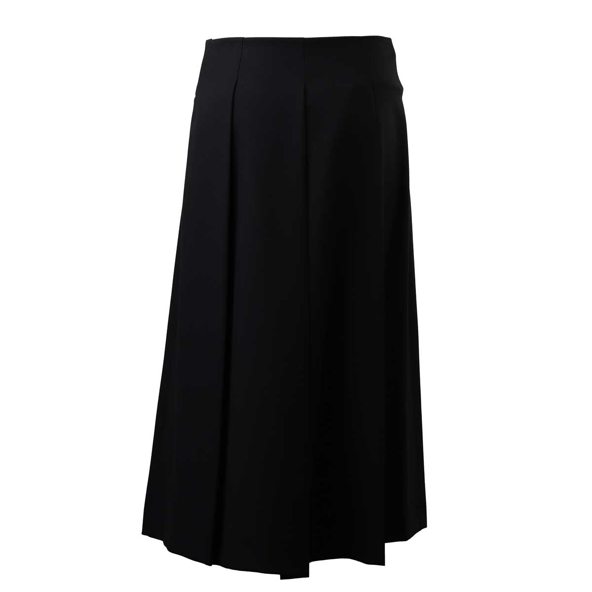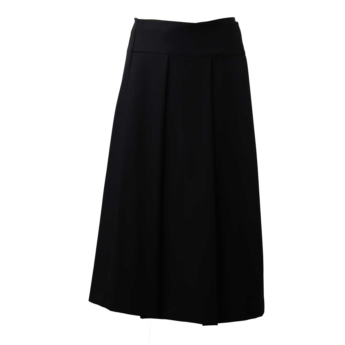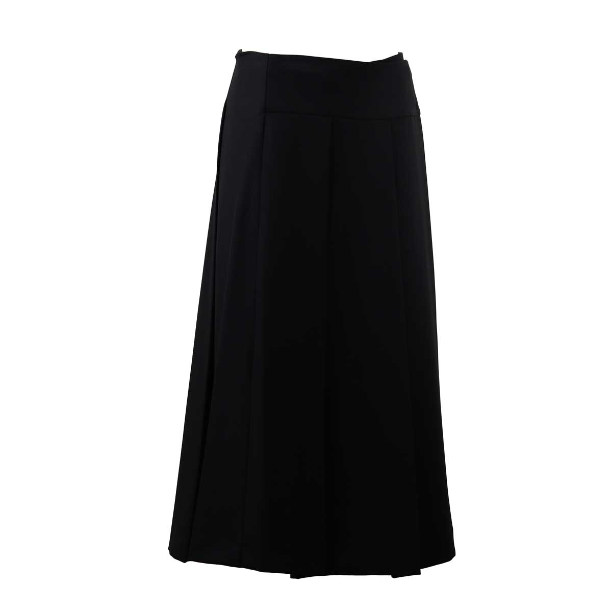 Gonna STRESA nera di IBLUES in tessuto stretch con chiusura a portafoglio con bottoni, linea svasata a pieghe. Fit regolare.