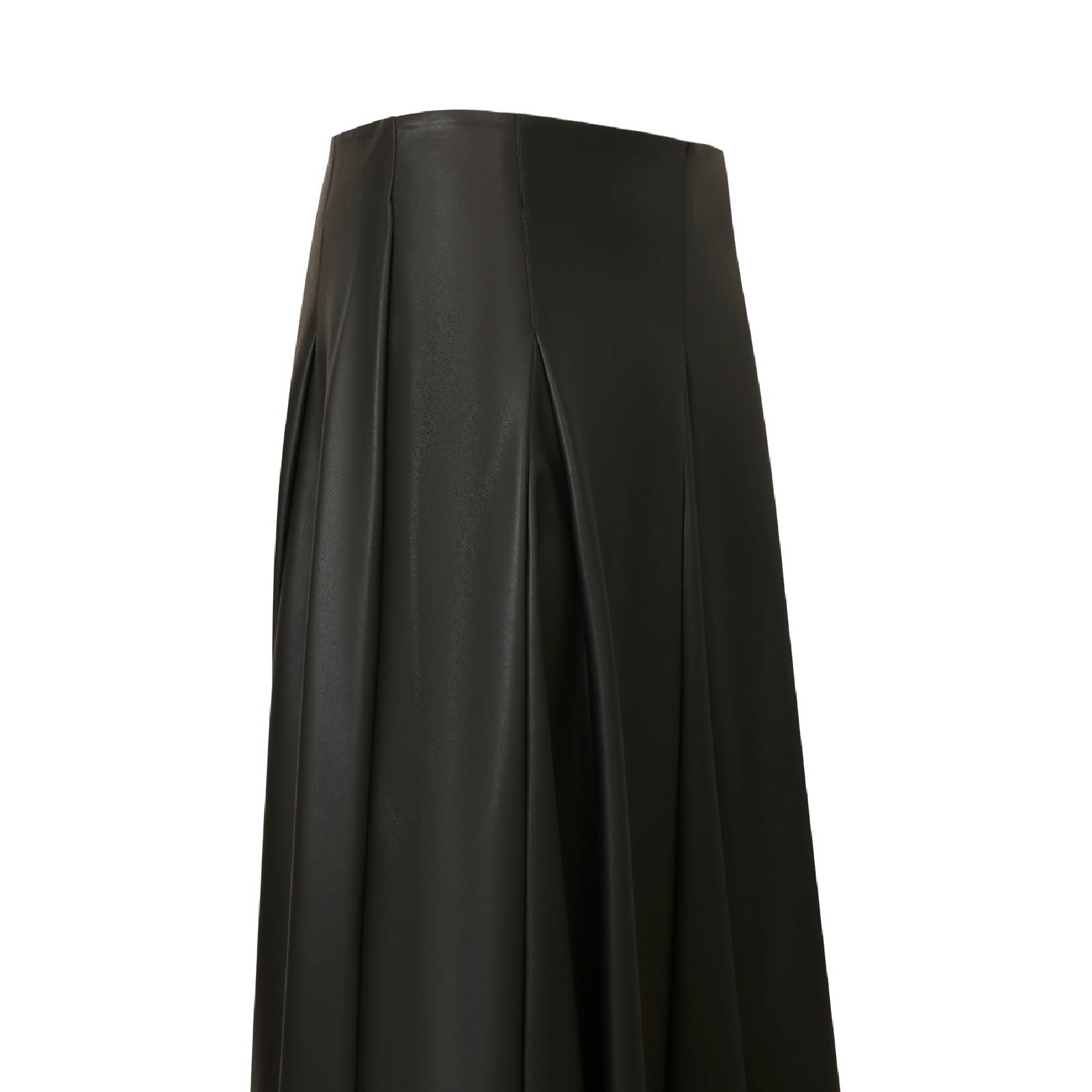 Gonna NOCERA nera di MM MAX MARA in poliestere con chiusura con zip laterale, linea svasata con pieghe. Lunghezza midi.