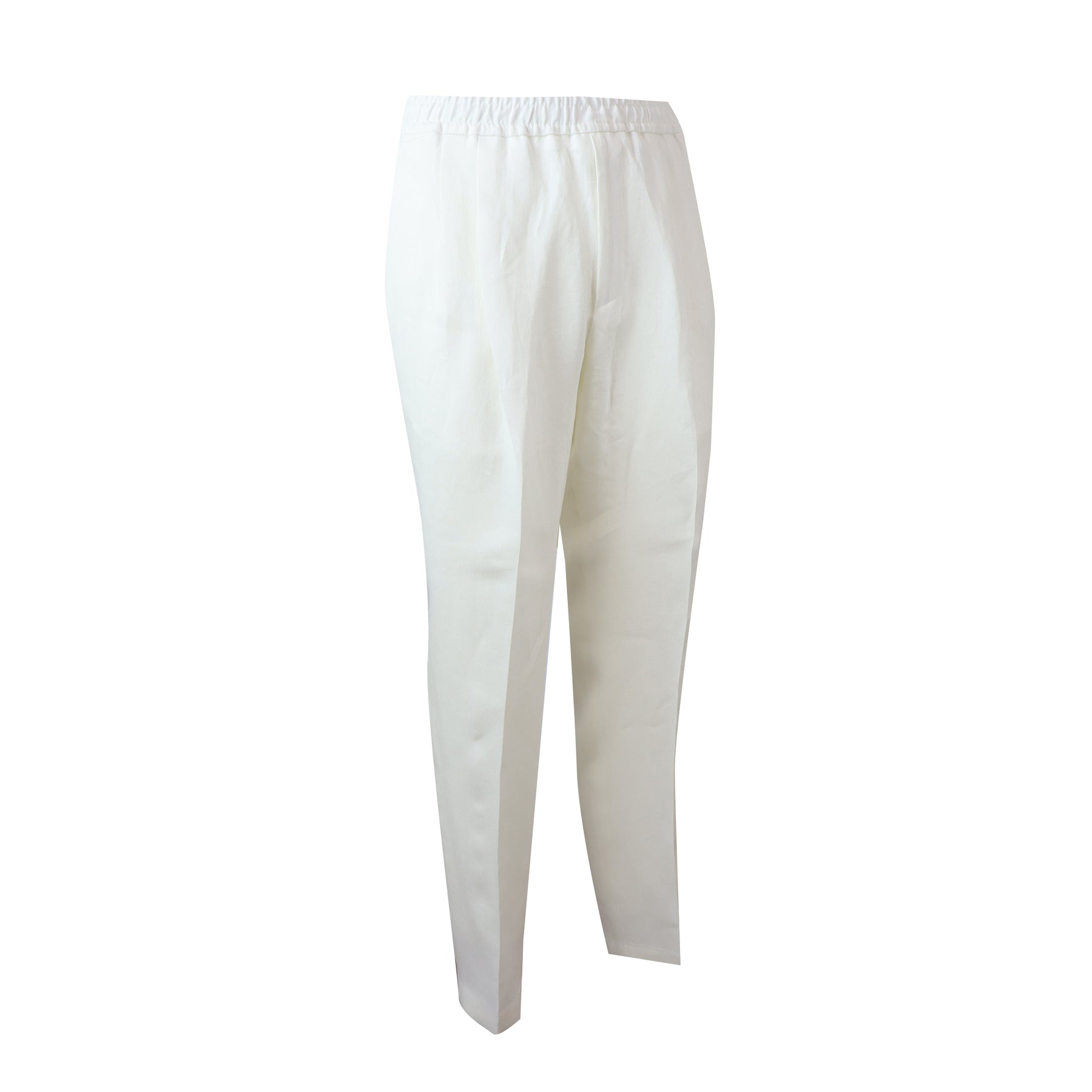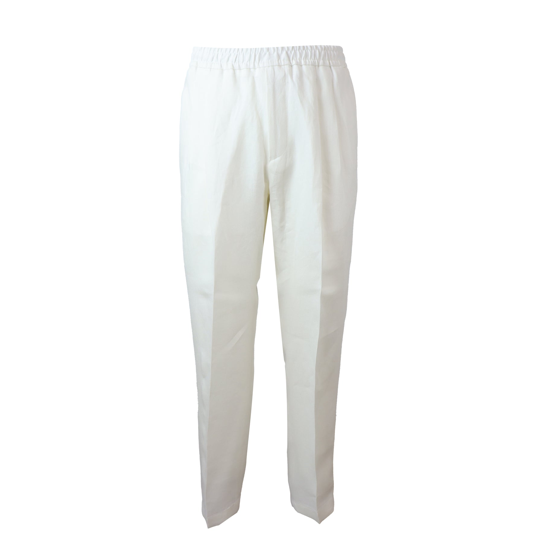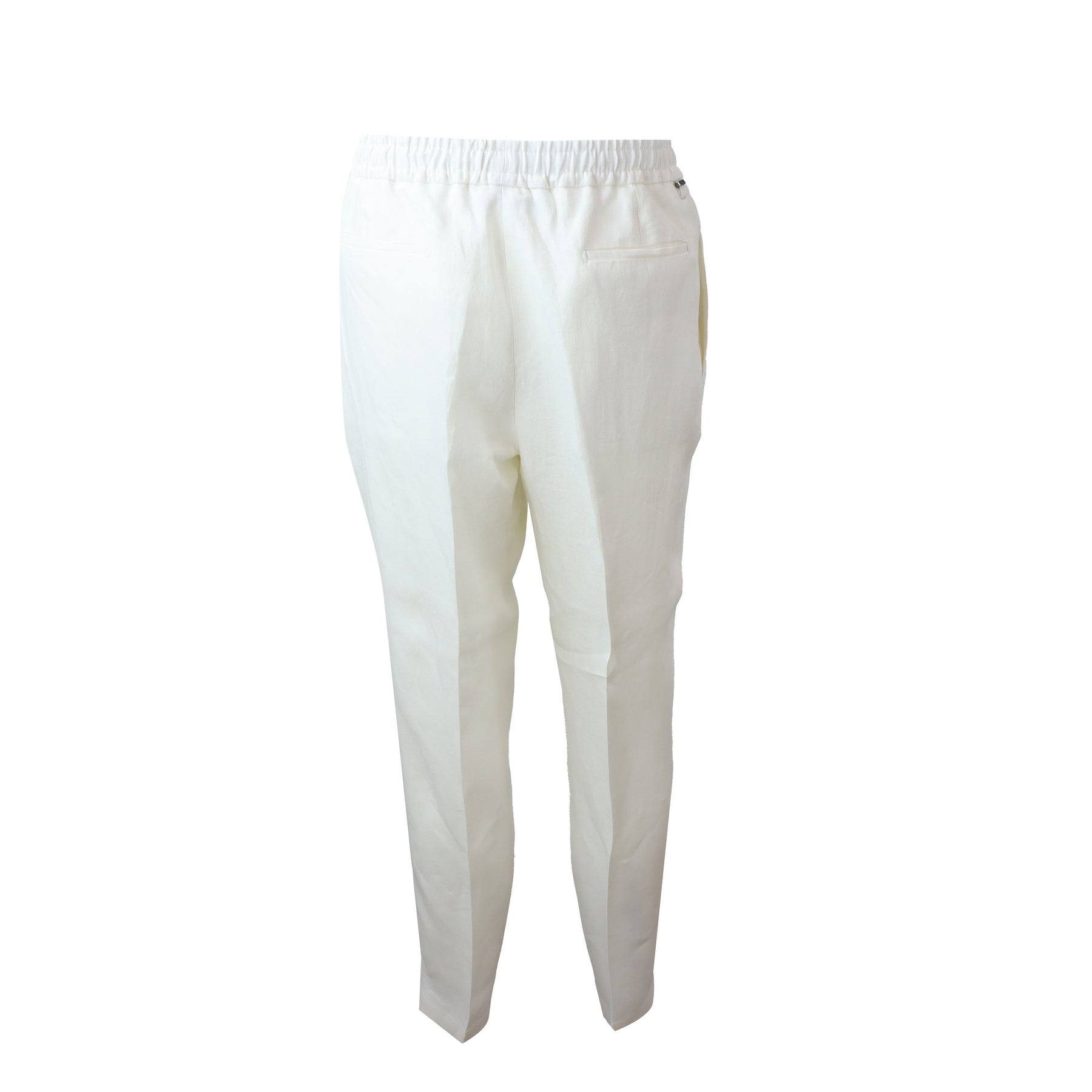 Pantalone BADDY bianco di BE ABLE in lino con una pence, coulisse in vita, tasche laterali, tasche posteriori a filetto.