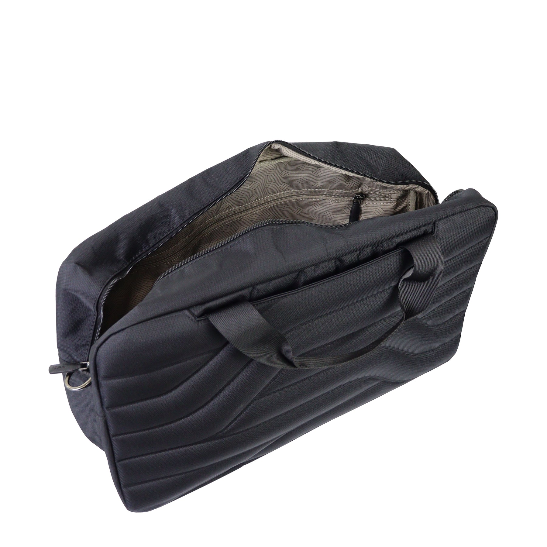 Borsone da viaggio WEEKENDER nero di BRICS in tessuto. Il borsone ha uno stile semplice ed elegante caratterizzato da una tasca frontale aperta, una tasca nel retro chiuso con cerniera, da due manici unibili da strappo, una tracolla in tessuto e chiusura con zip. All'interno è dotato di due tasche aperte e una tasca chiusa con cerniera. Misure 55x32x20 cm