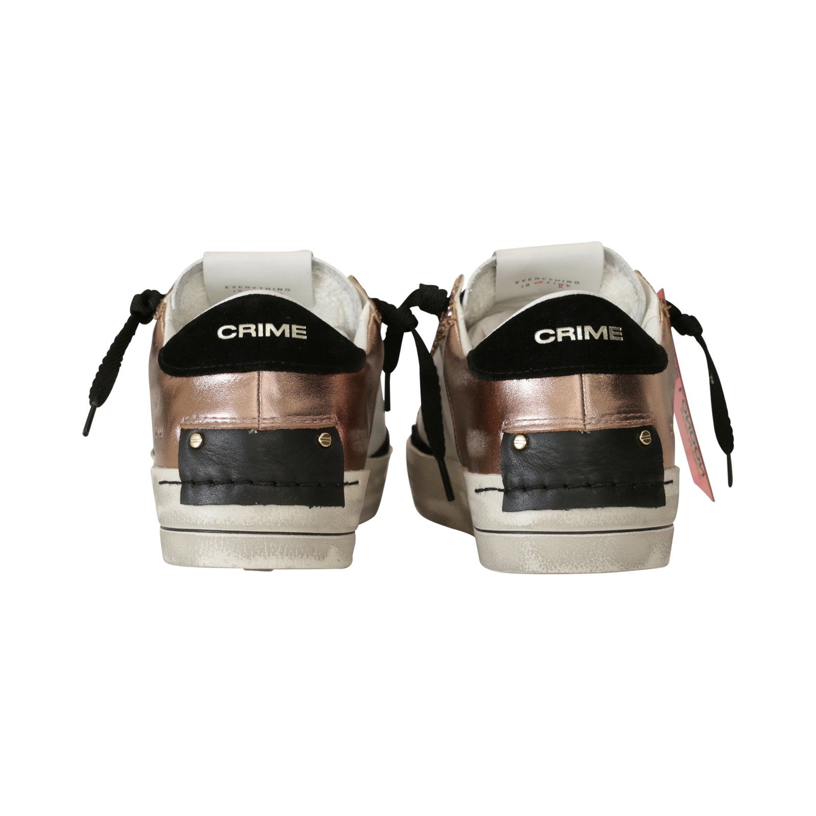 Sneakers SKATE DELUXE bianca di CRIME in pelle con bordi in pelle laminata rame, tallone e profili in nero e glitter rame. Fondo in gomma effetto used