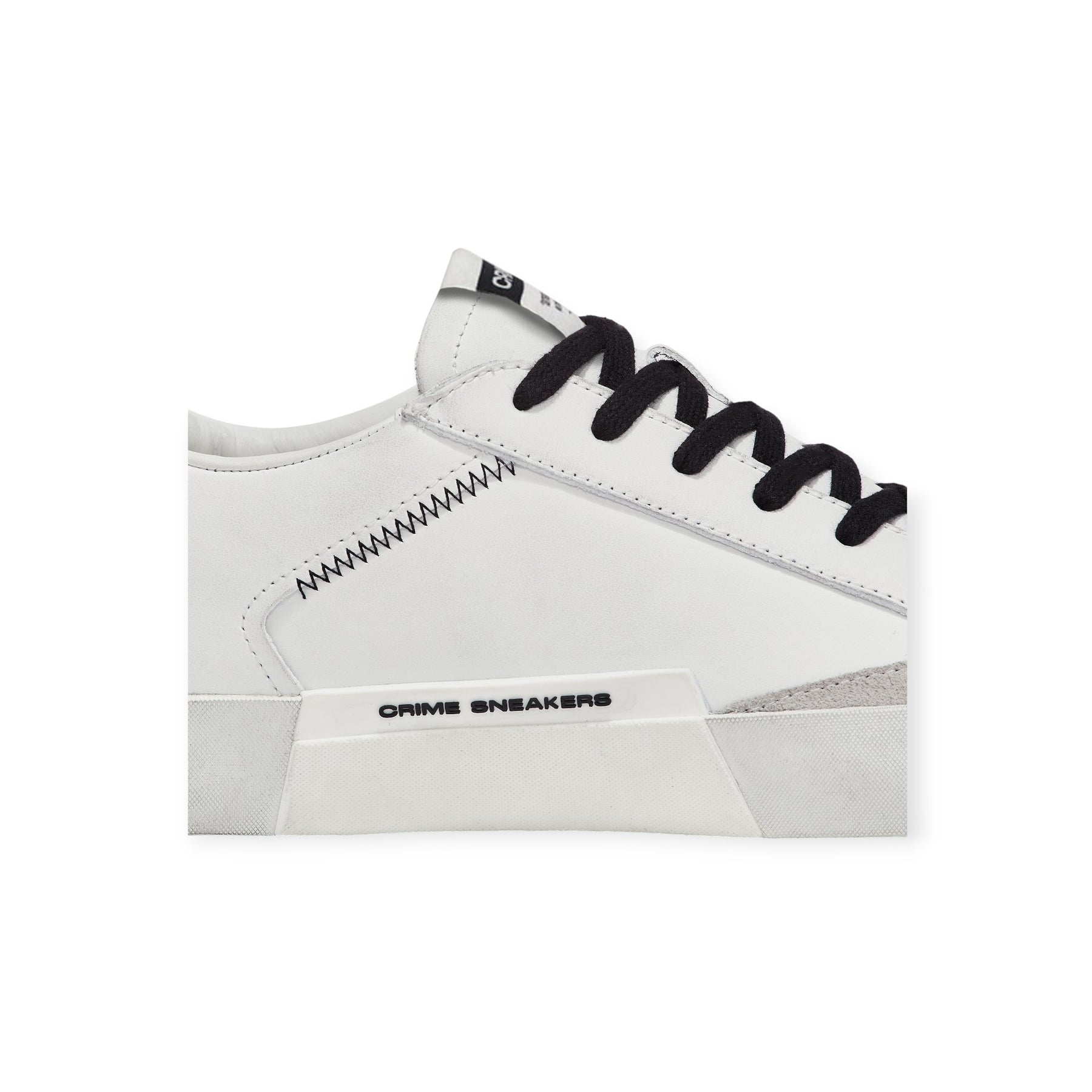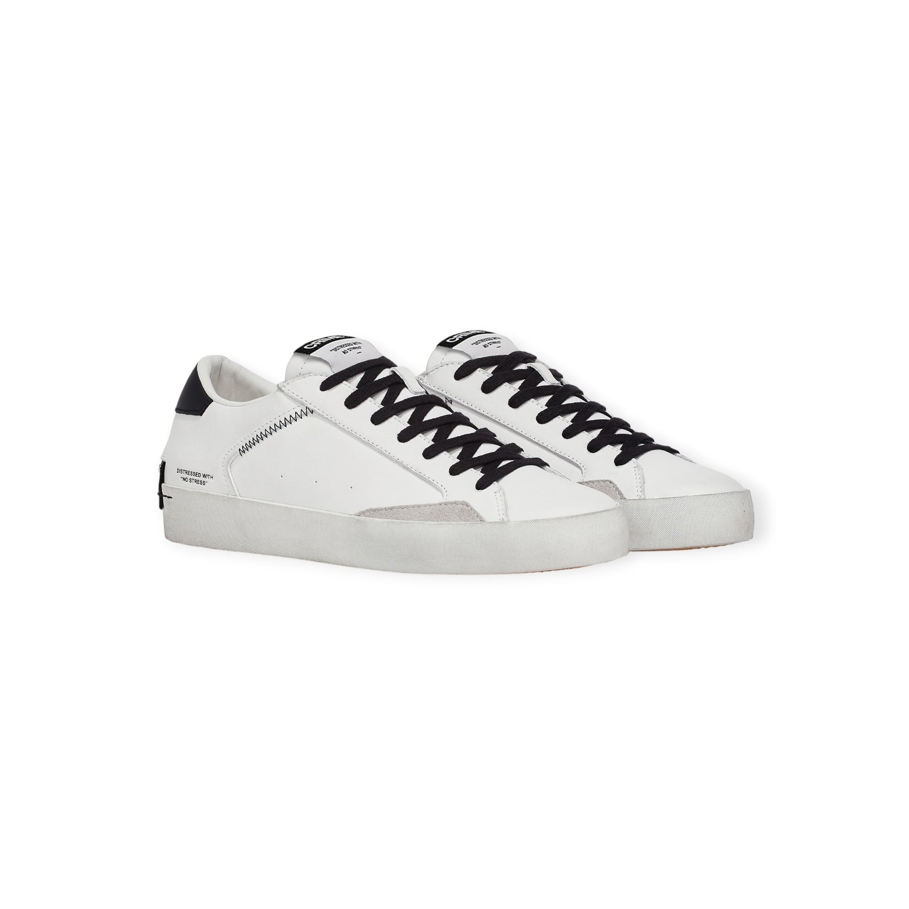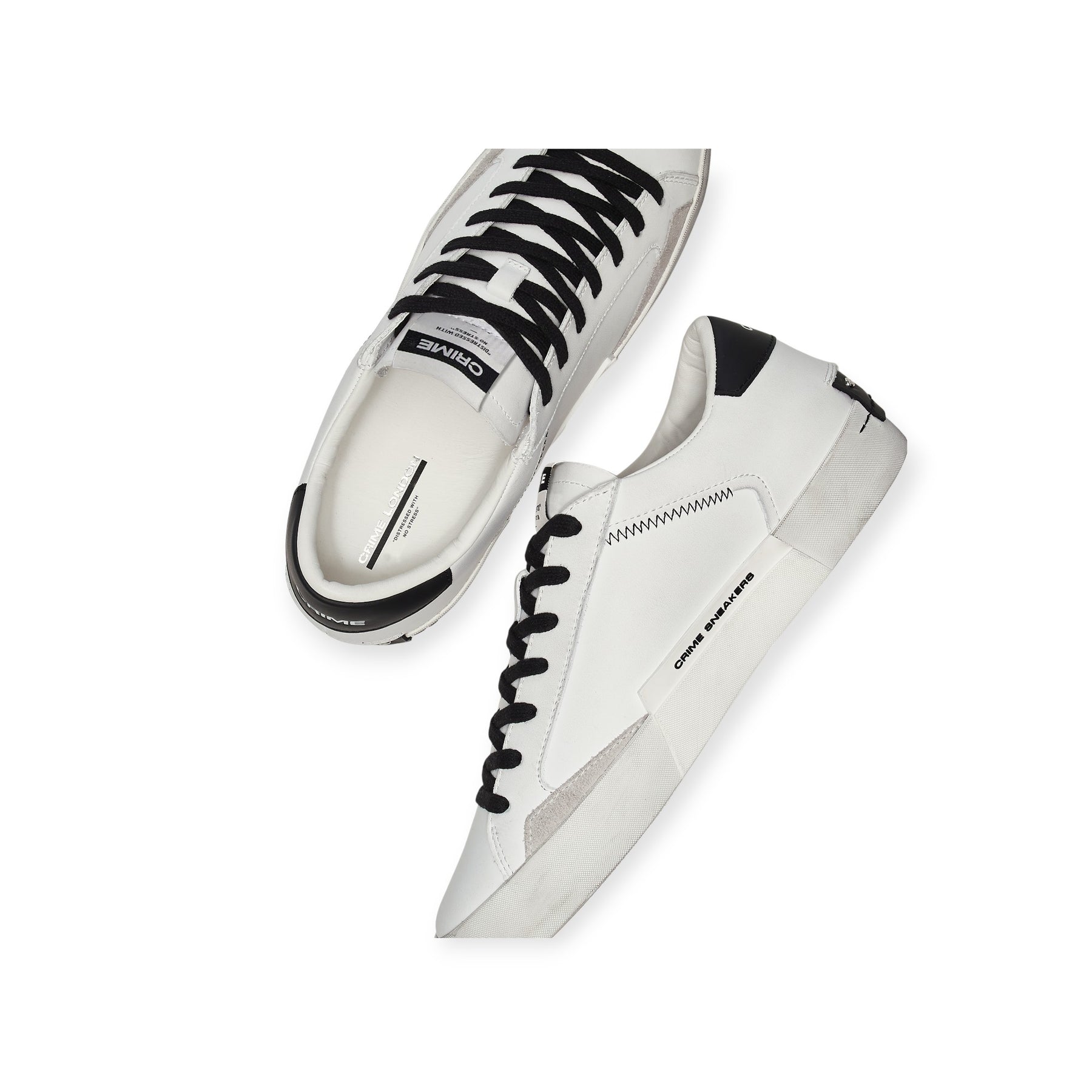Sneakers DISTRESSED bianca di CRIME in pelle con profilo in camoscio ghiaccio, talloncino posteriore in pelle nera con logo lettering. Fondo in gomma.