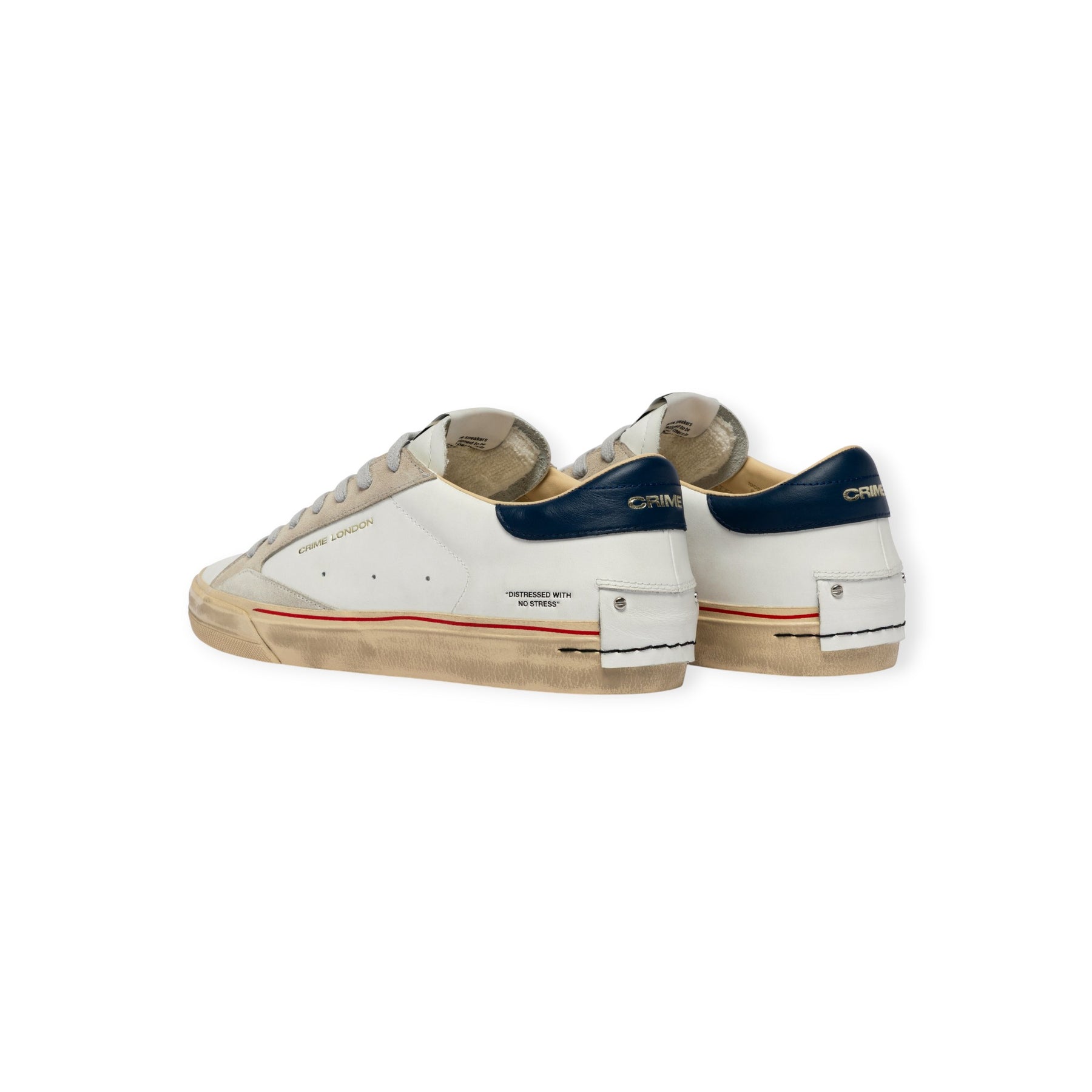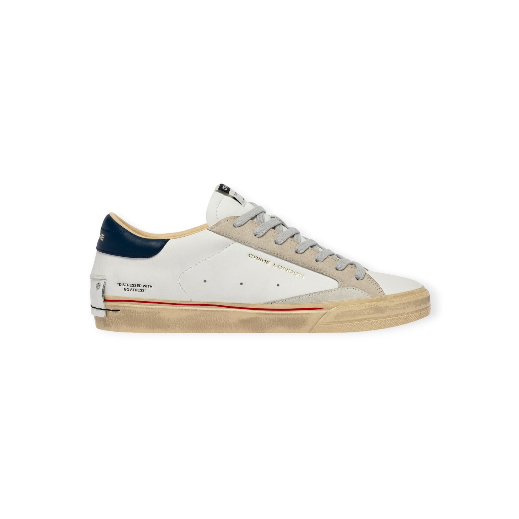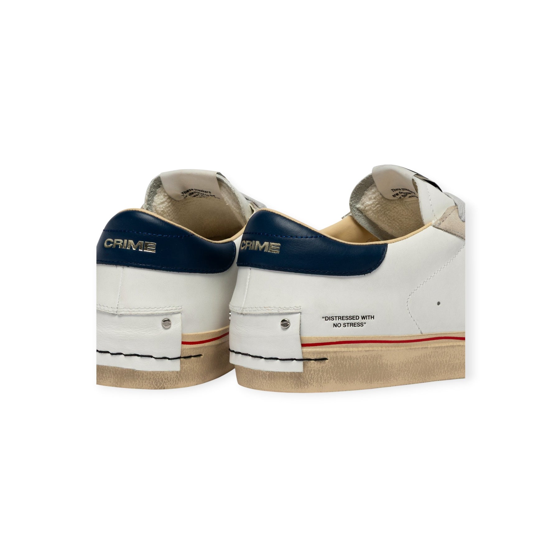 Sneakers DISTRESSED bianca di CRIME in pelle con profili in camoscio beige e ghiaccio, talloncino posteriore in pelle blu con logo lettering. Fondo in gomma.