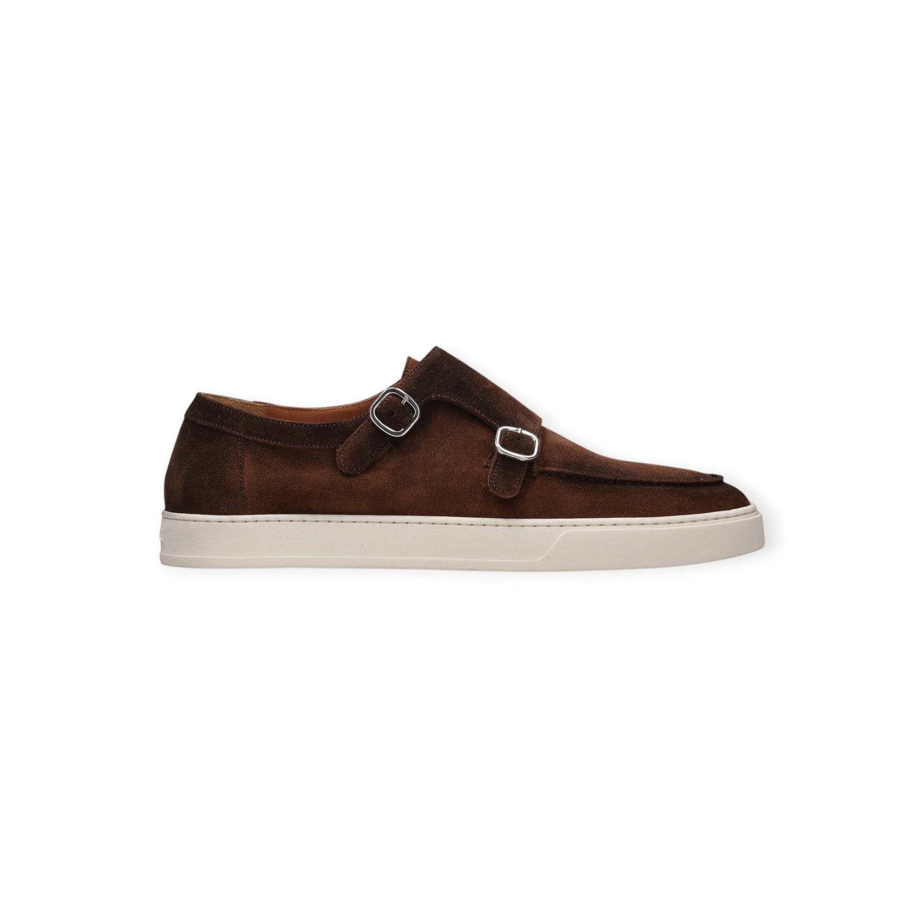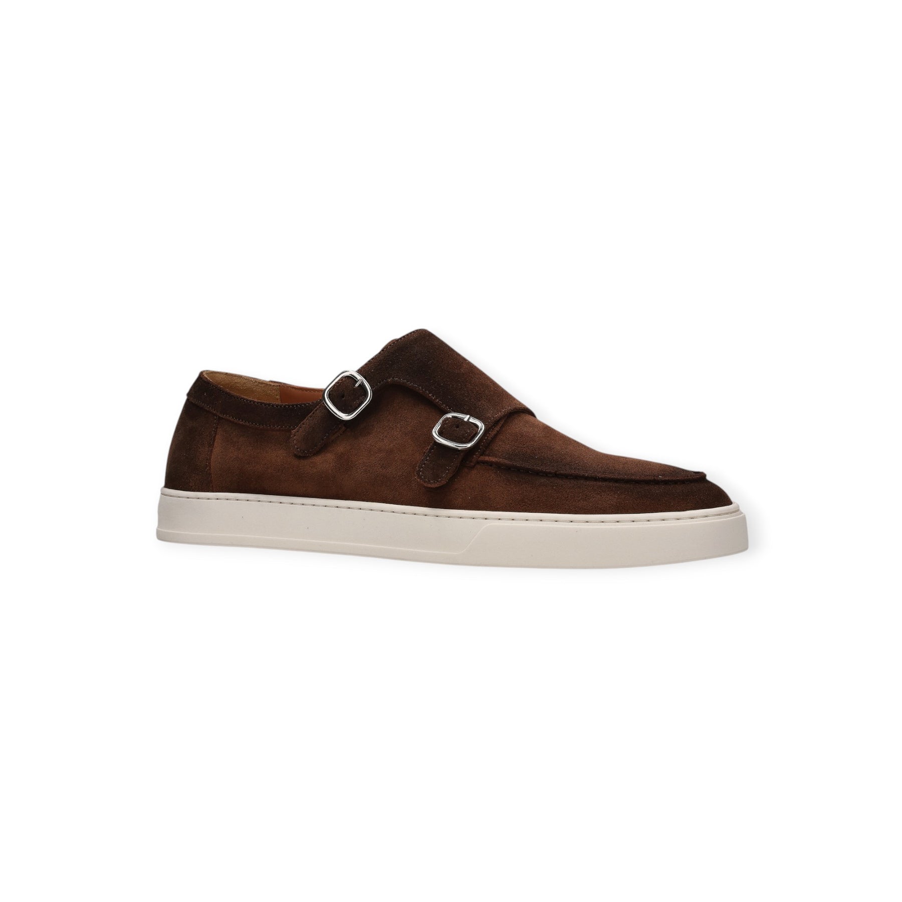 Sneakers cuoio di DOUCALS in camoscio con doppia fibbia, modello accollato, fondo in gomma bianca.