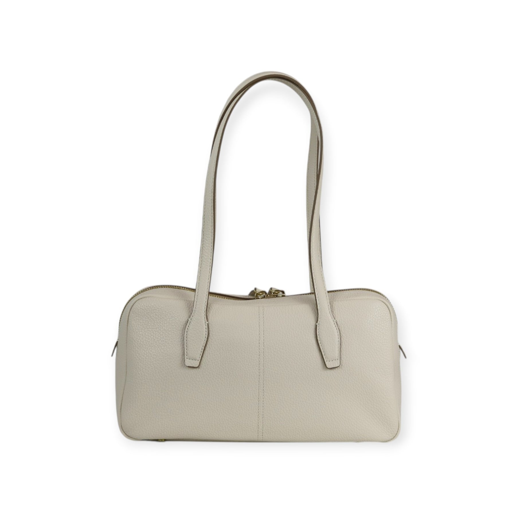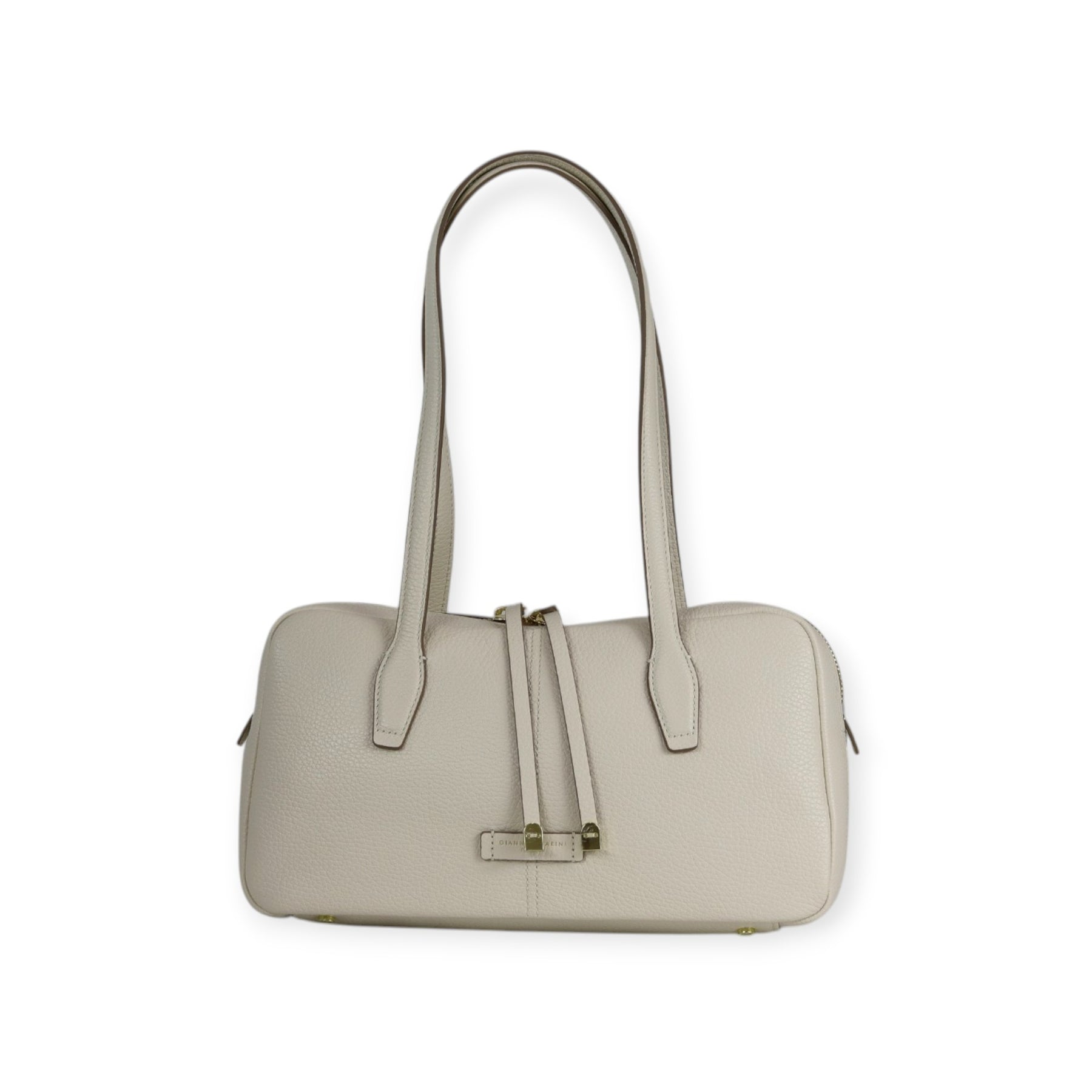 Borsa a mano latte di GIANNI CHIARINI in pelle con doppio cursore, doppio manico e modello bowling. Misura 32x17x11 cm.