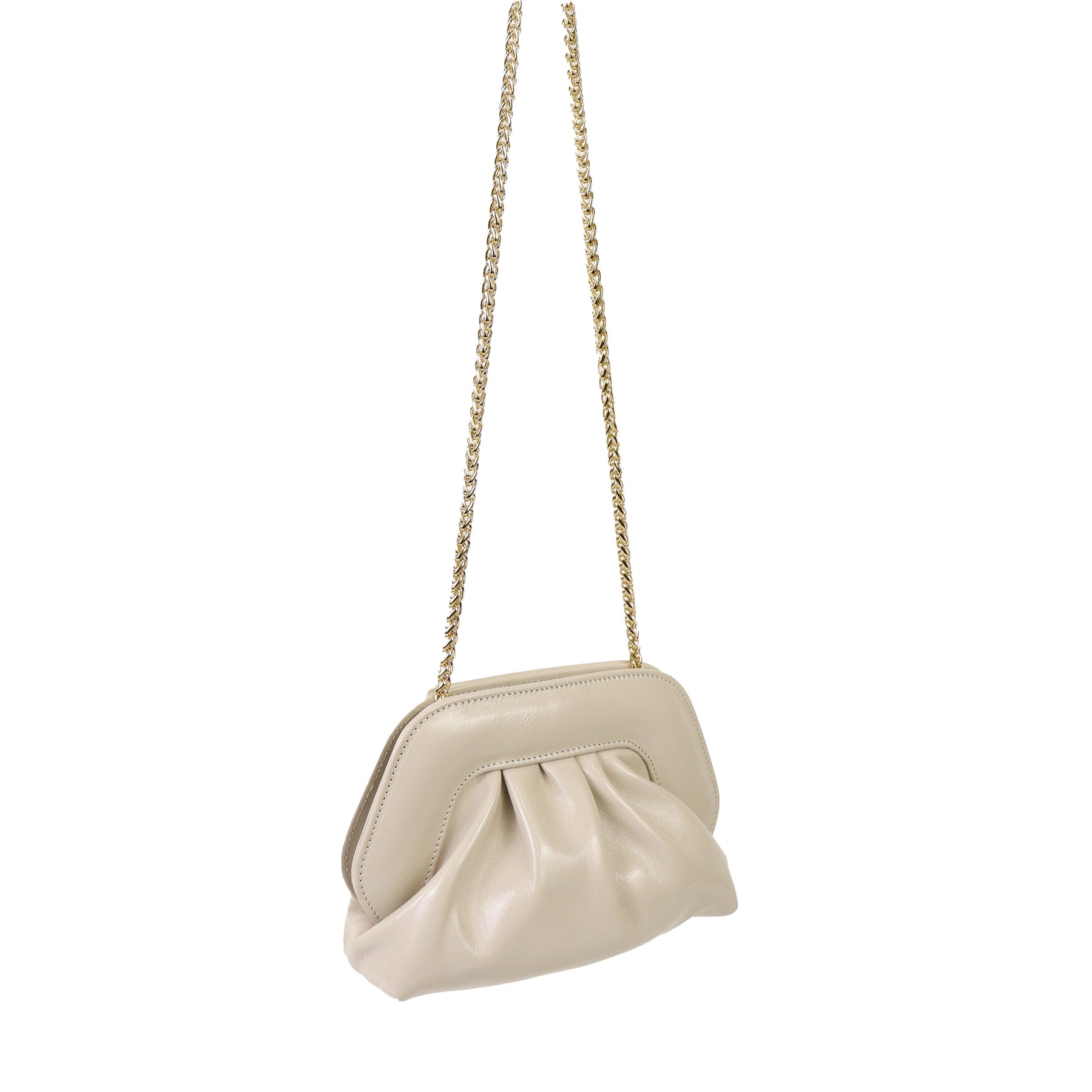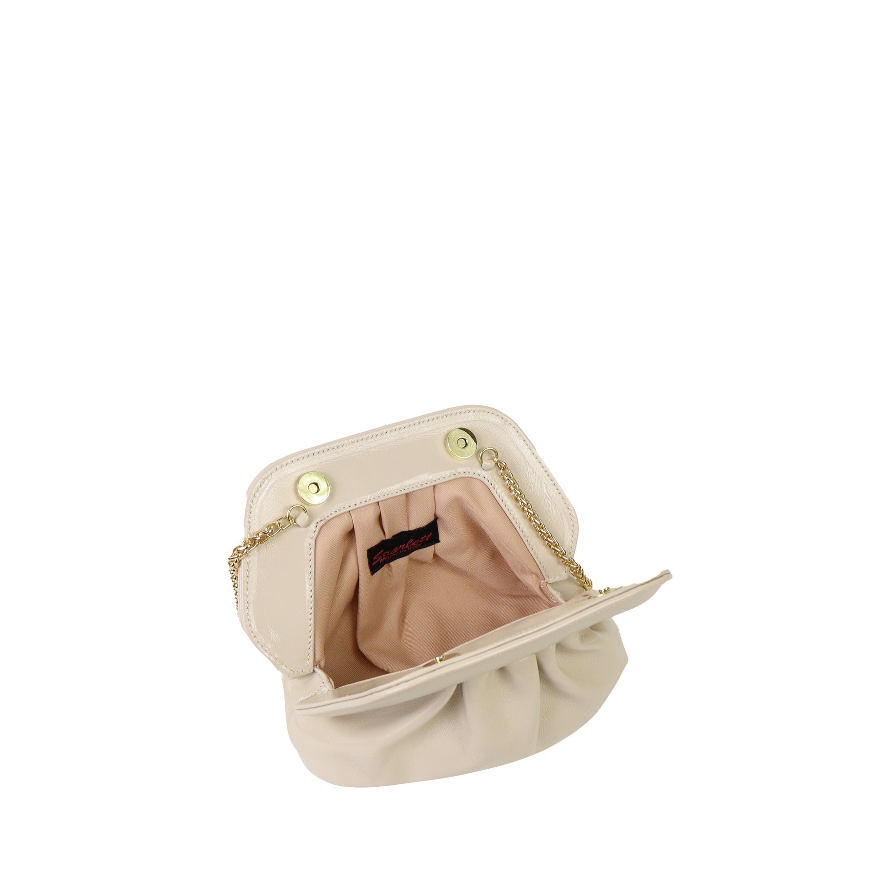 Borsetta c/arriccio ghiaccio in vernice di SCARLETT con tracollina a catena color oro e chiusura con clip. Misure 21x17x8 cm cm