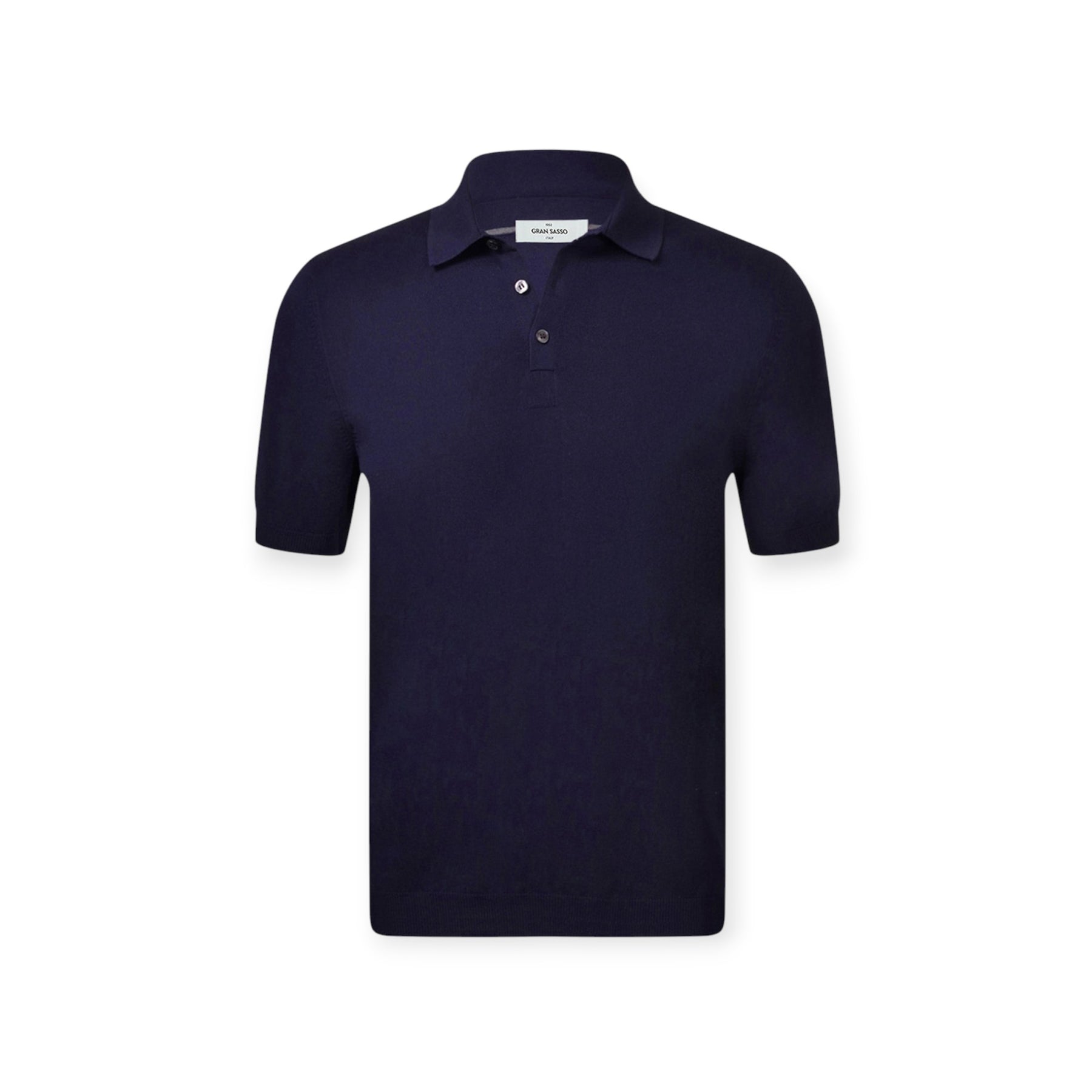 Tennis blu di GRAN SASSO X FEDELE in cotone con collo camicia, 3 bottoni e lavorazione a chicco di riso.