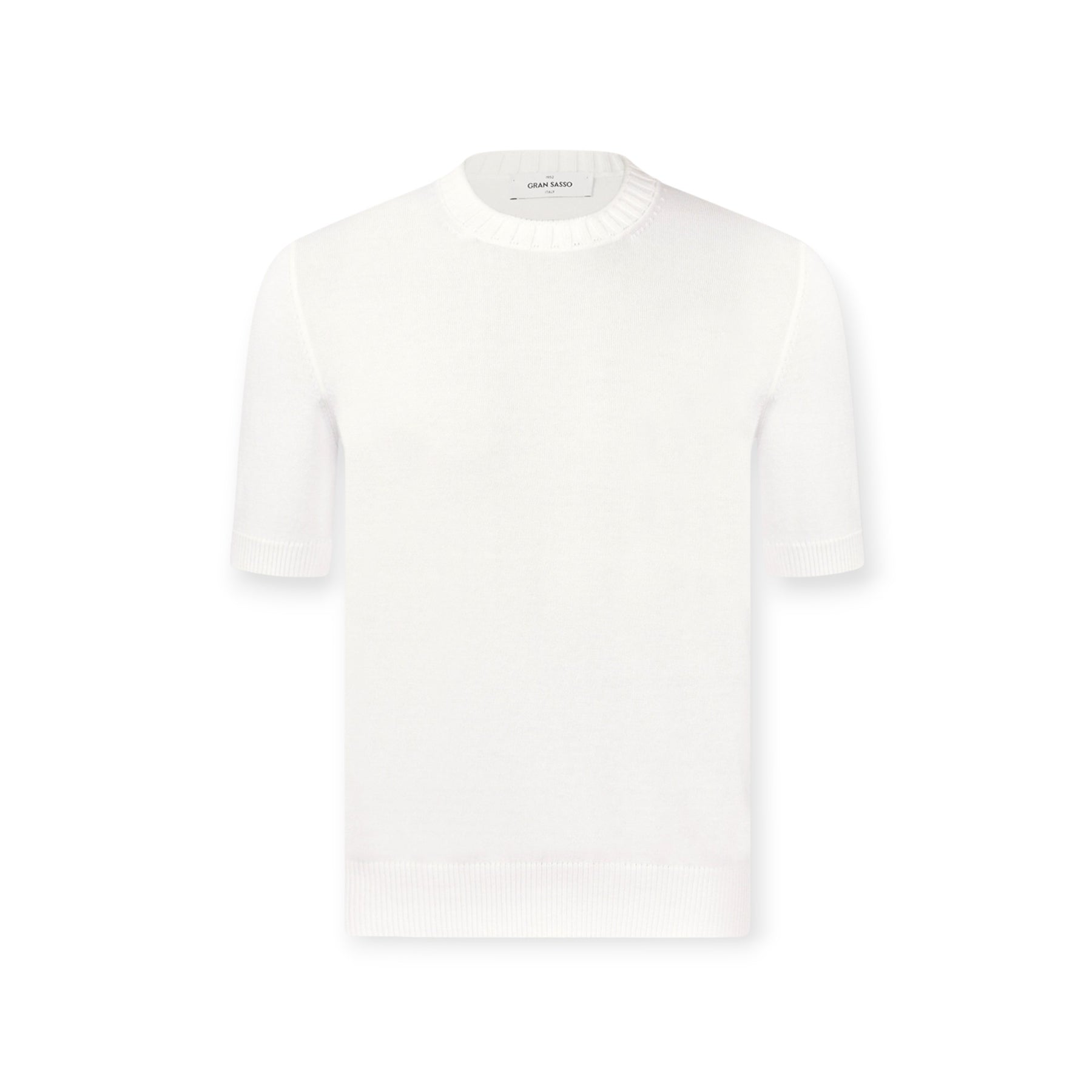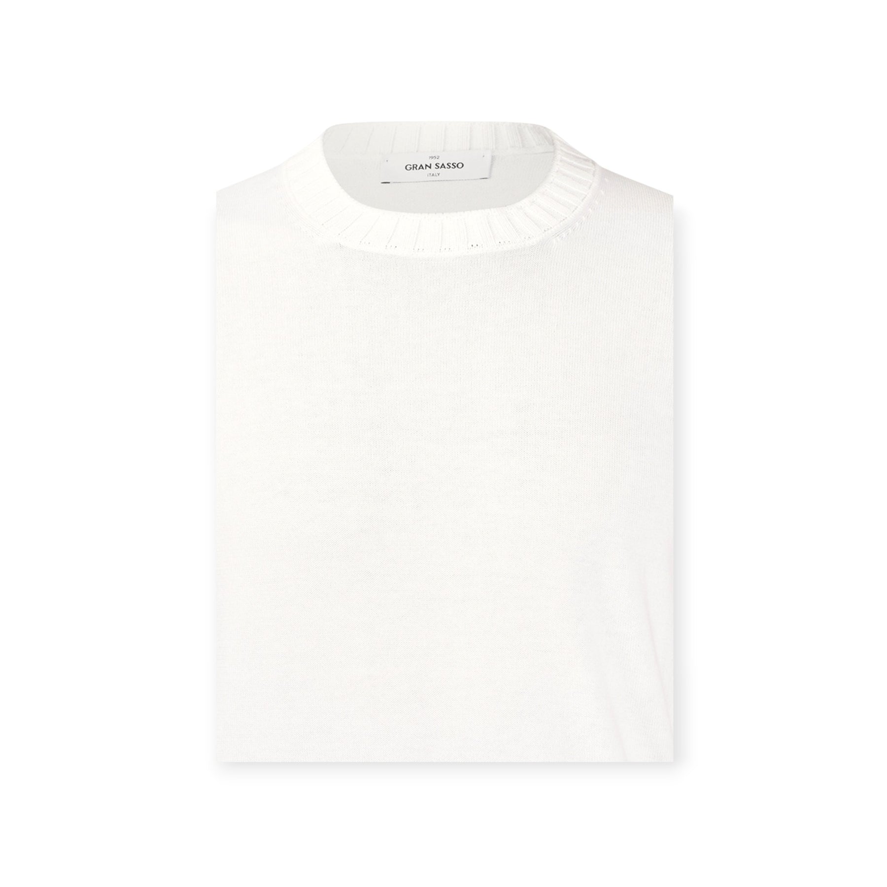 Paricollo mezzamanica bianco di GRAN SASSO X FEDELE in cotone con collo a coste e bordi e maniche a costine.