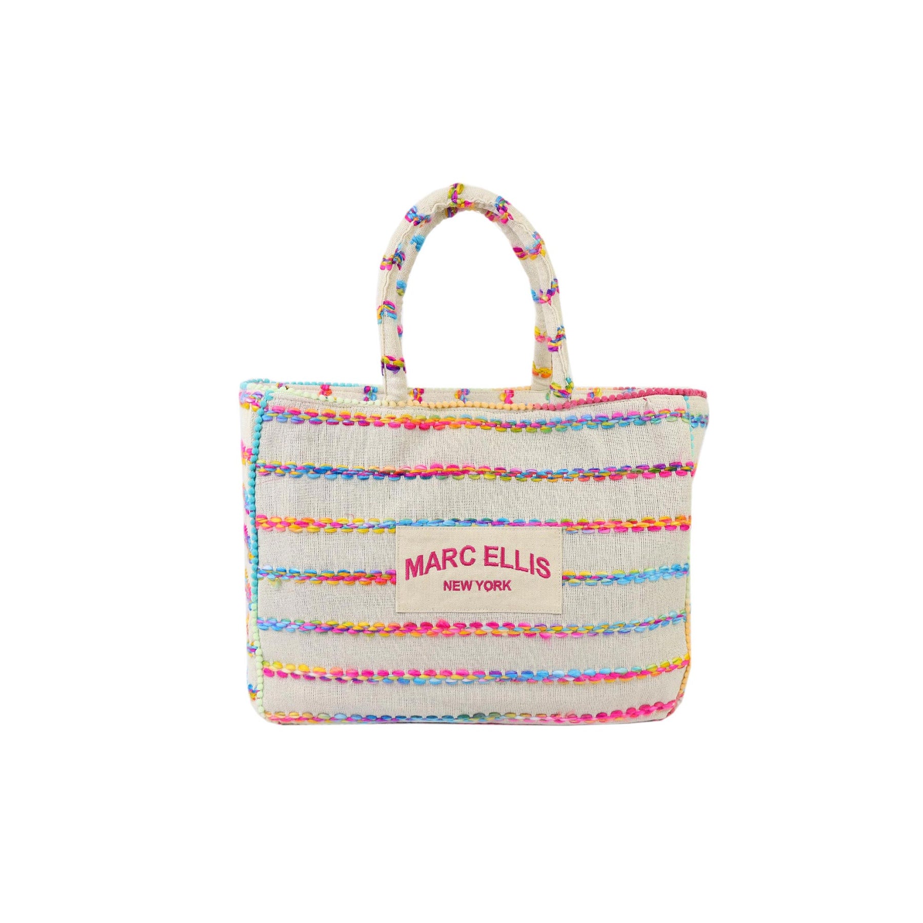 Borsa mare media beige BUBY M INDY di MARC ELLIS in canvas con cuciture e dettagli lungo i bordi multicolor. la borsa è dotata di una tracolla in tessuto regolabile e chiusura con cerniera. All'interno si compone di un unico scomparto avente una tasca ampia chiusa con cerniera. Misure 43X29X16
