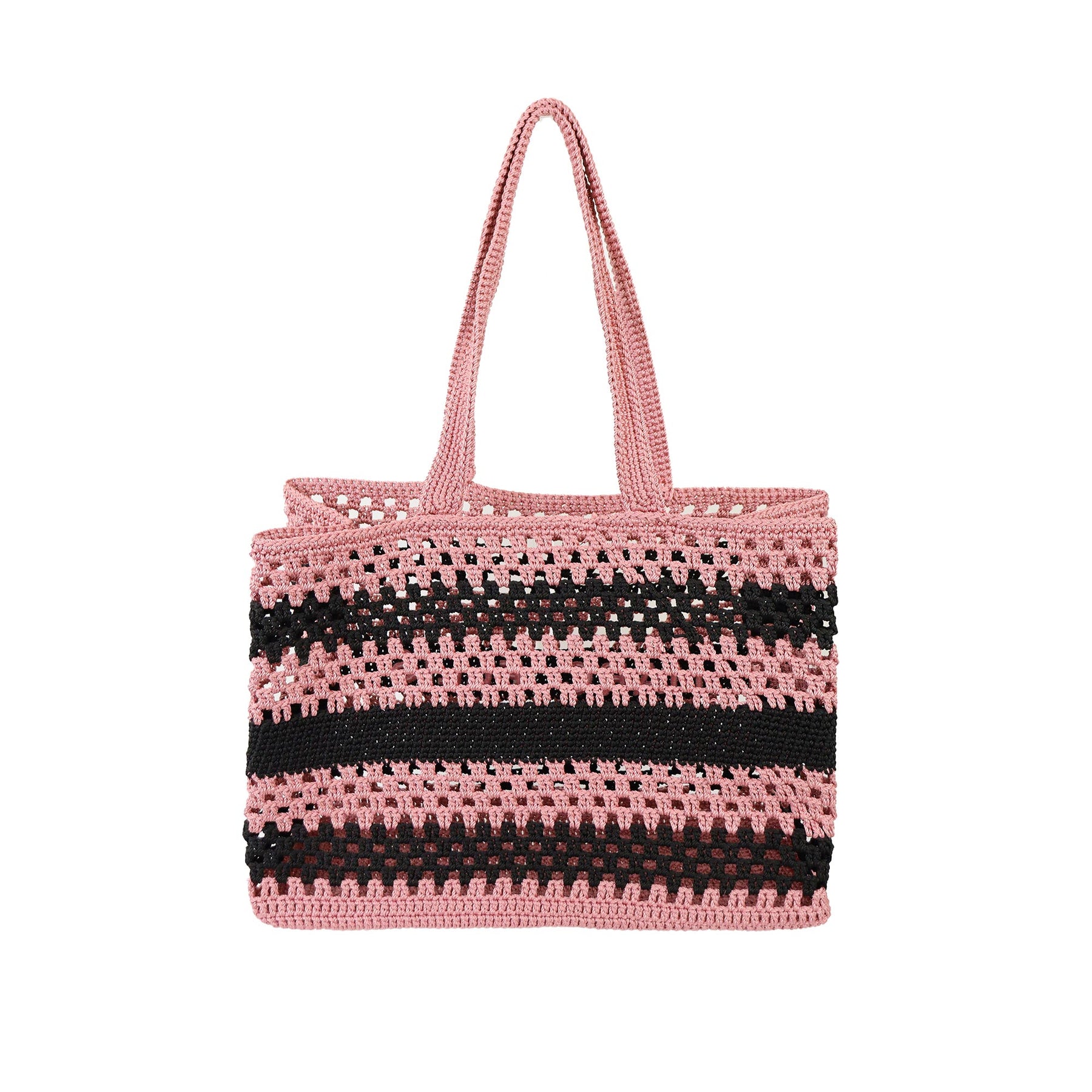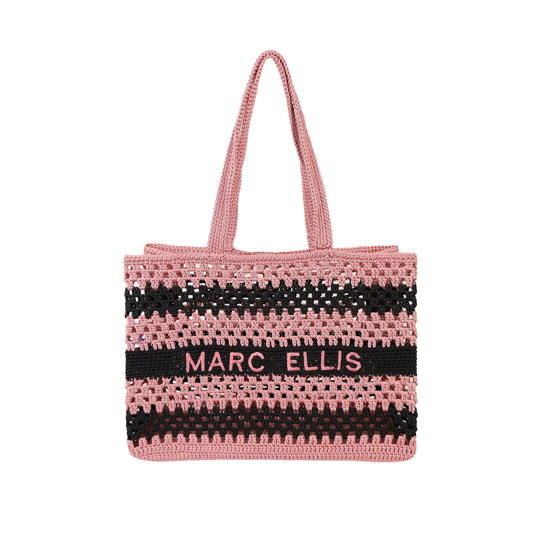Borsa mare grande rosa e nera BUBY VALENZA di MARC ELLIS in corda intrecciata. La borsa è dotata di un unico scomparto e logo lettering. Misure 47x33x17 cm