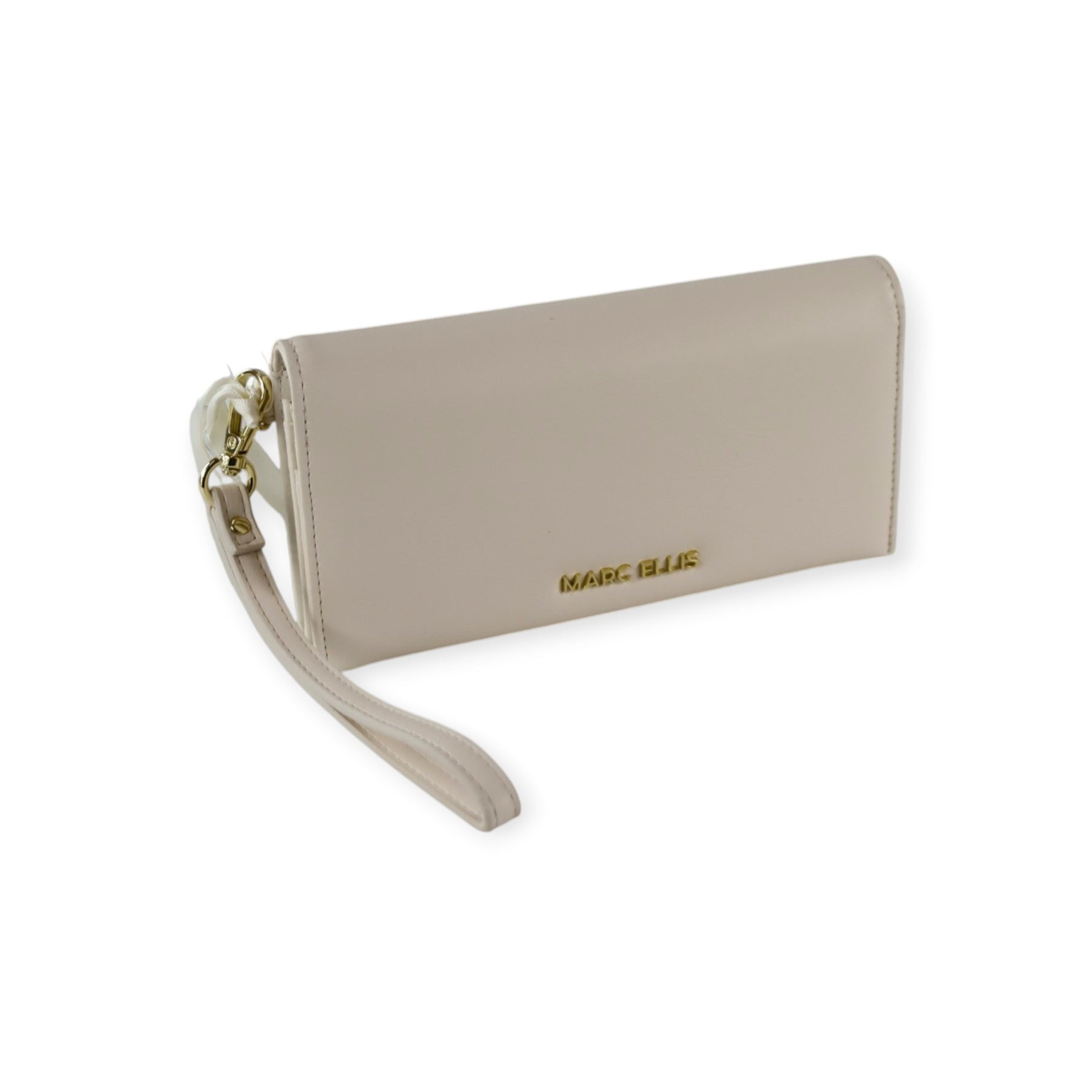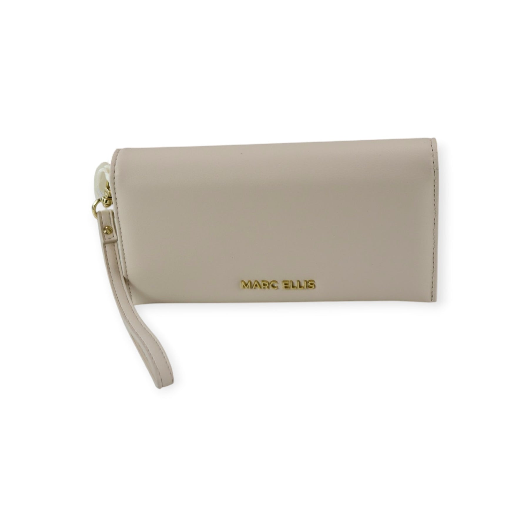 Portafogli MARC latte di MARC ELLIS in ecopelle con chiusura con patta, logo lettering in metallo, polsiera. Misure 20x10x4 cm.