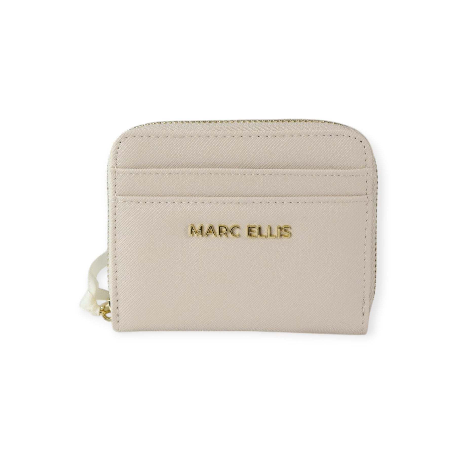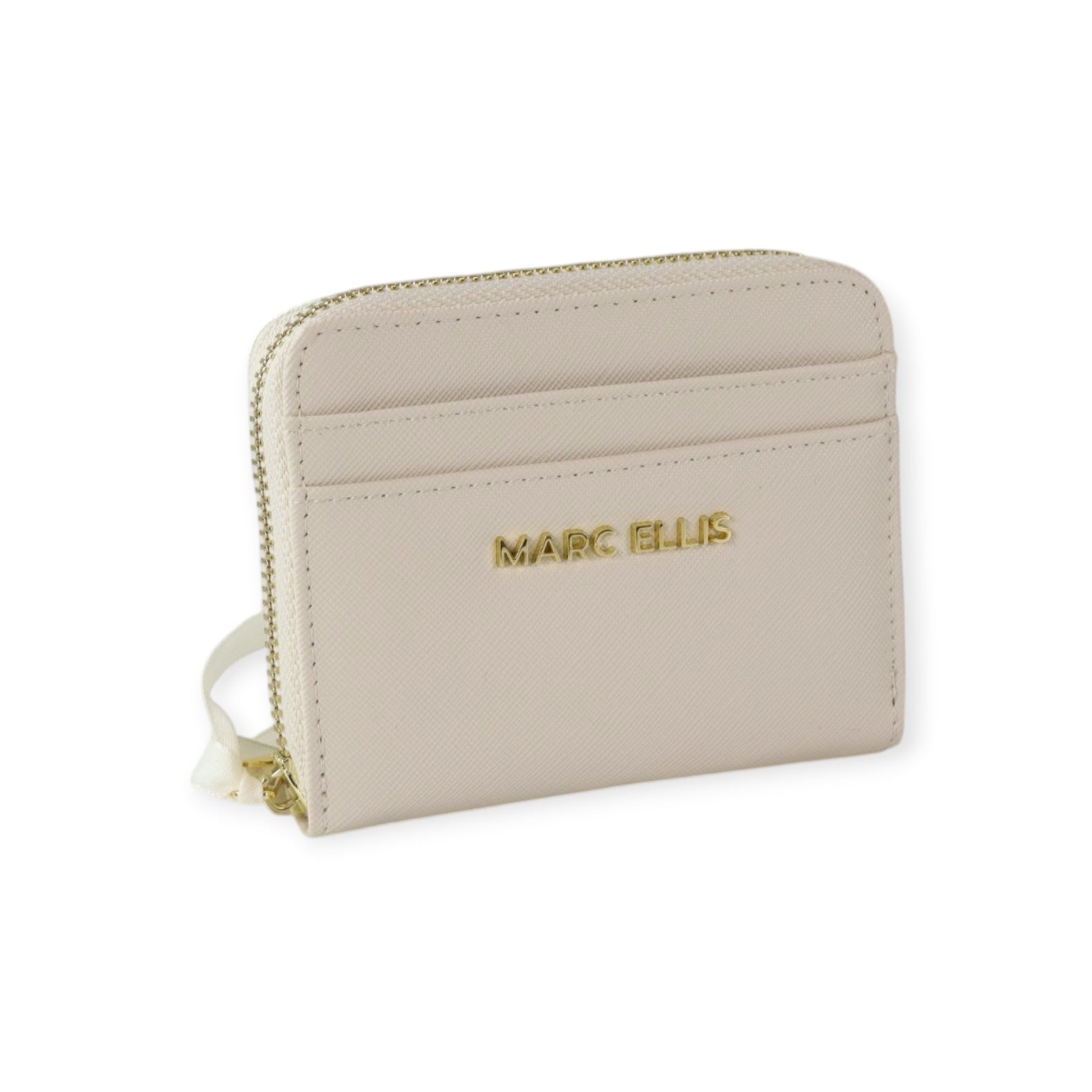 Portafogli SABA latte di MARC ELLIS in ecopelle con chiusura con zip around, scomparto esterno per carte, logo in metallo. Misure 12x10x3 cm.