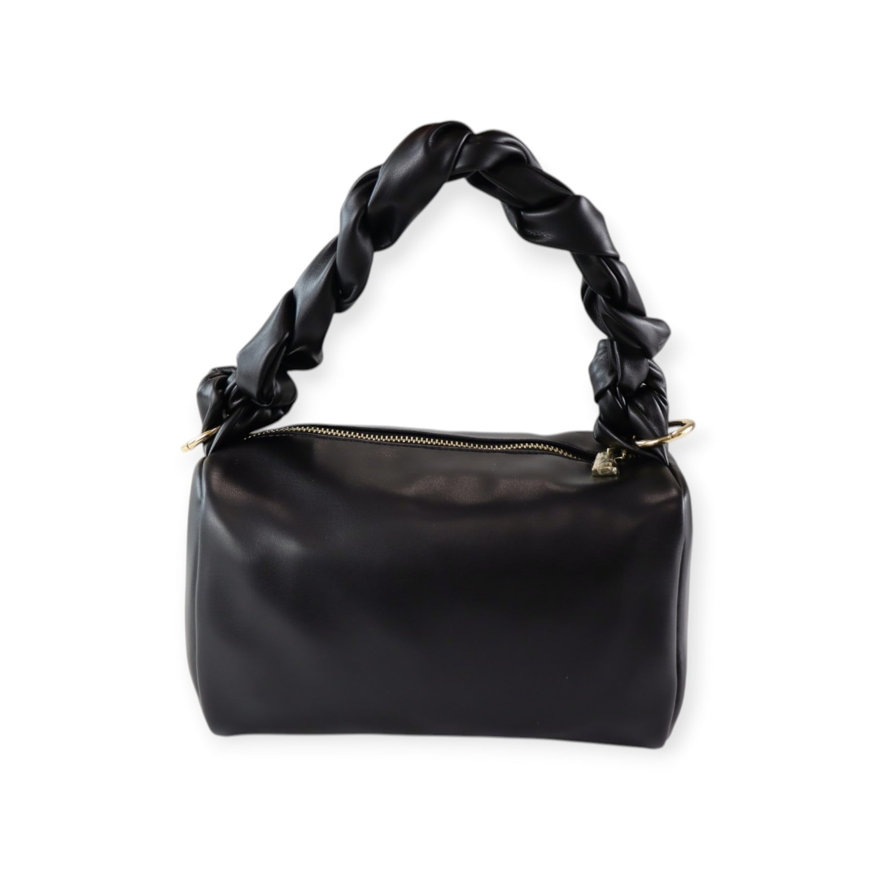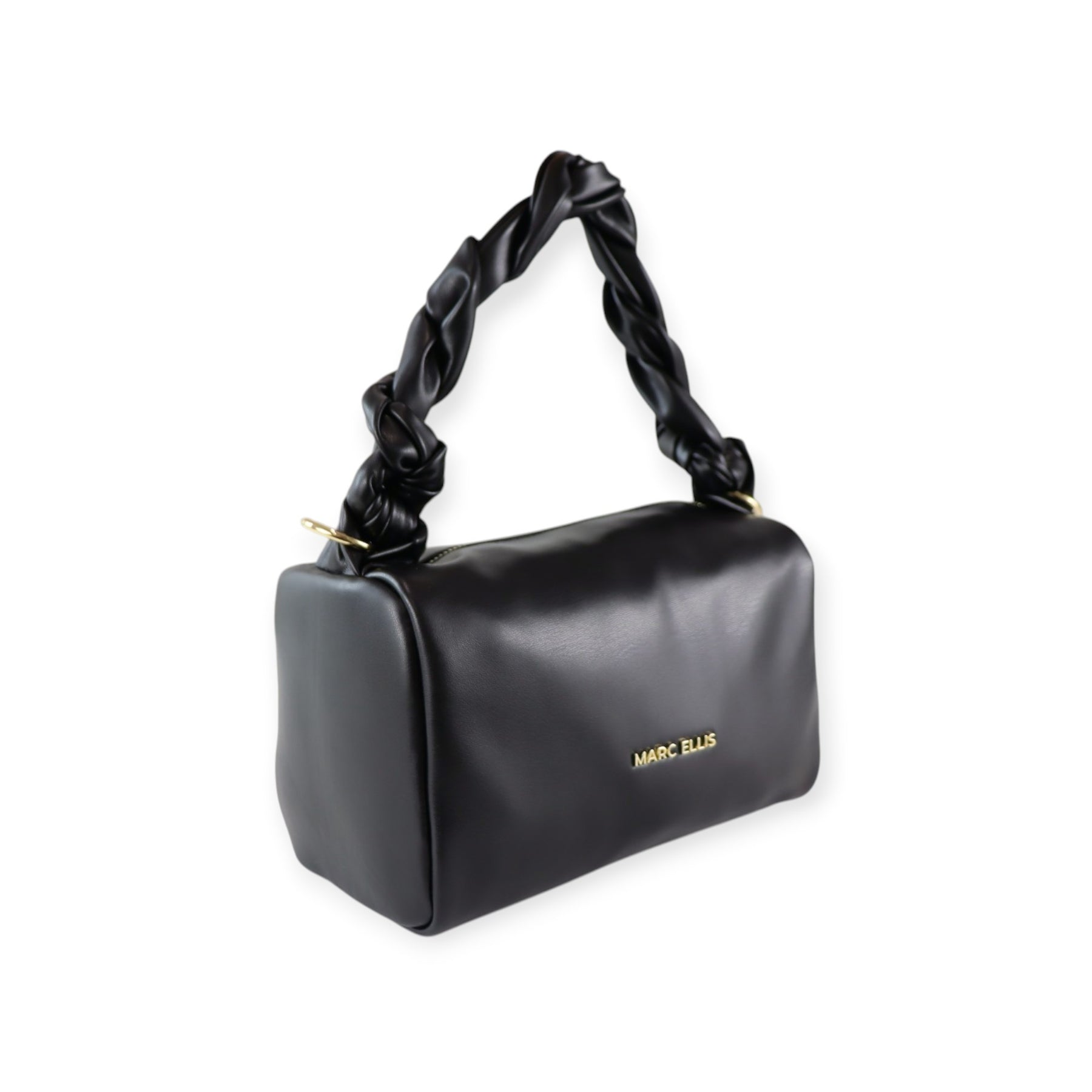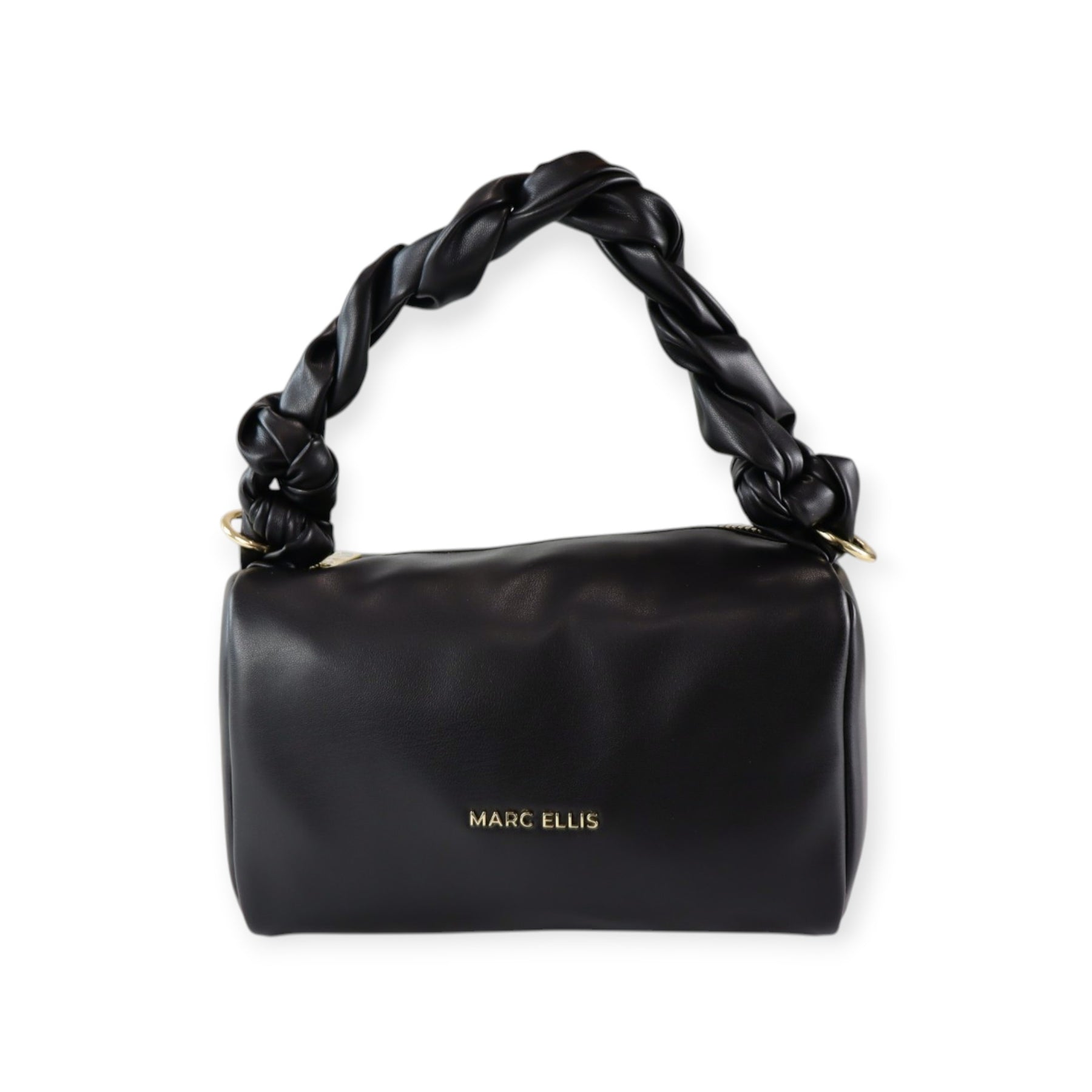 Bauletto ZOEY nero di MARC ELLIS in ecopelle con chiusura con zip, manico con intreccio, logo in metallo. Misure 22x15x12 cm.