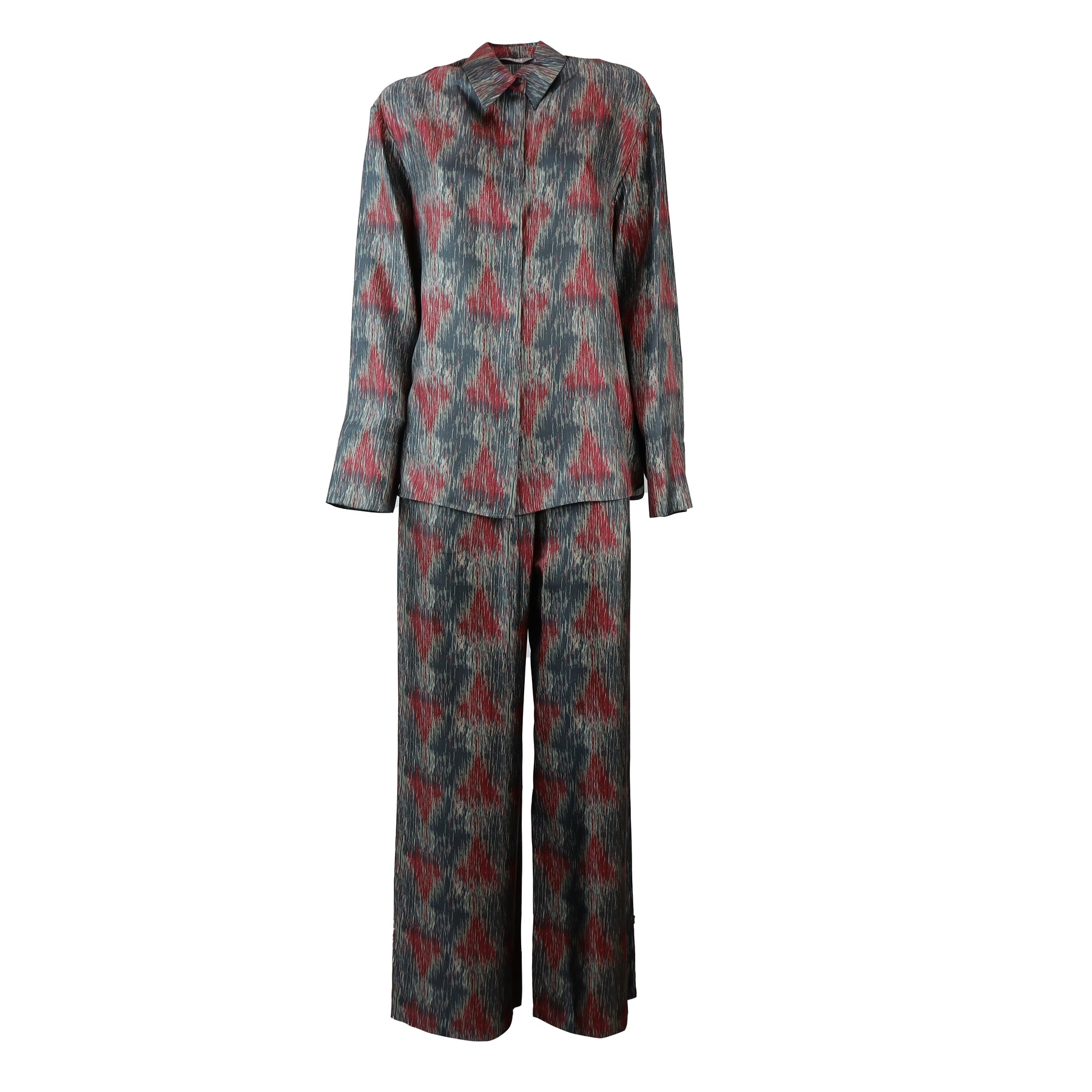 Camicia OSPITE fantasia di MM MAX MARA in seta con collo classico, chiusura con bottoni nascosta, manica lunga, fantasia con verde e rosso.