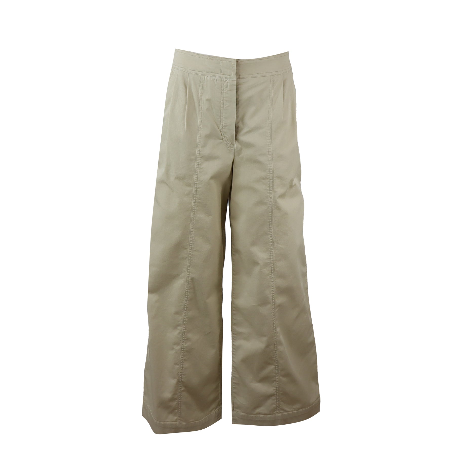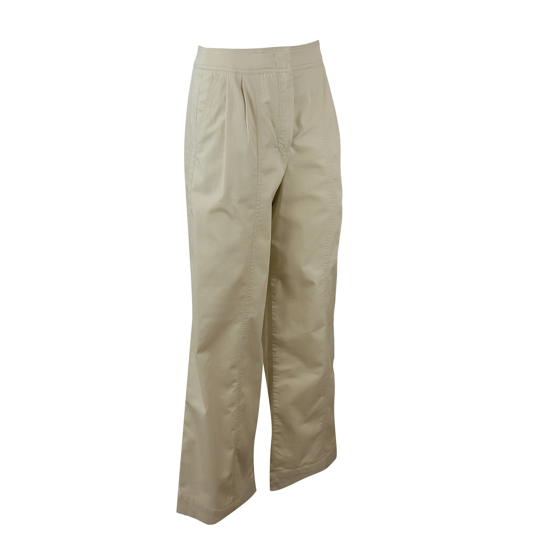 Pantalone STRENNA beige di MM MAX MARA in cotone con vita alta, fondo ampio.