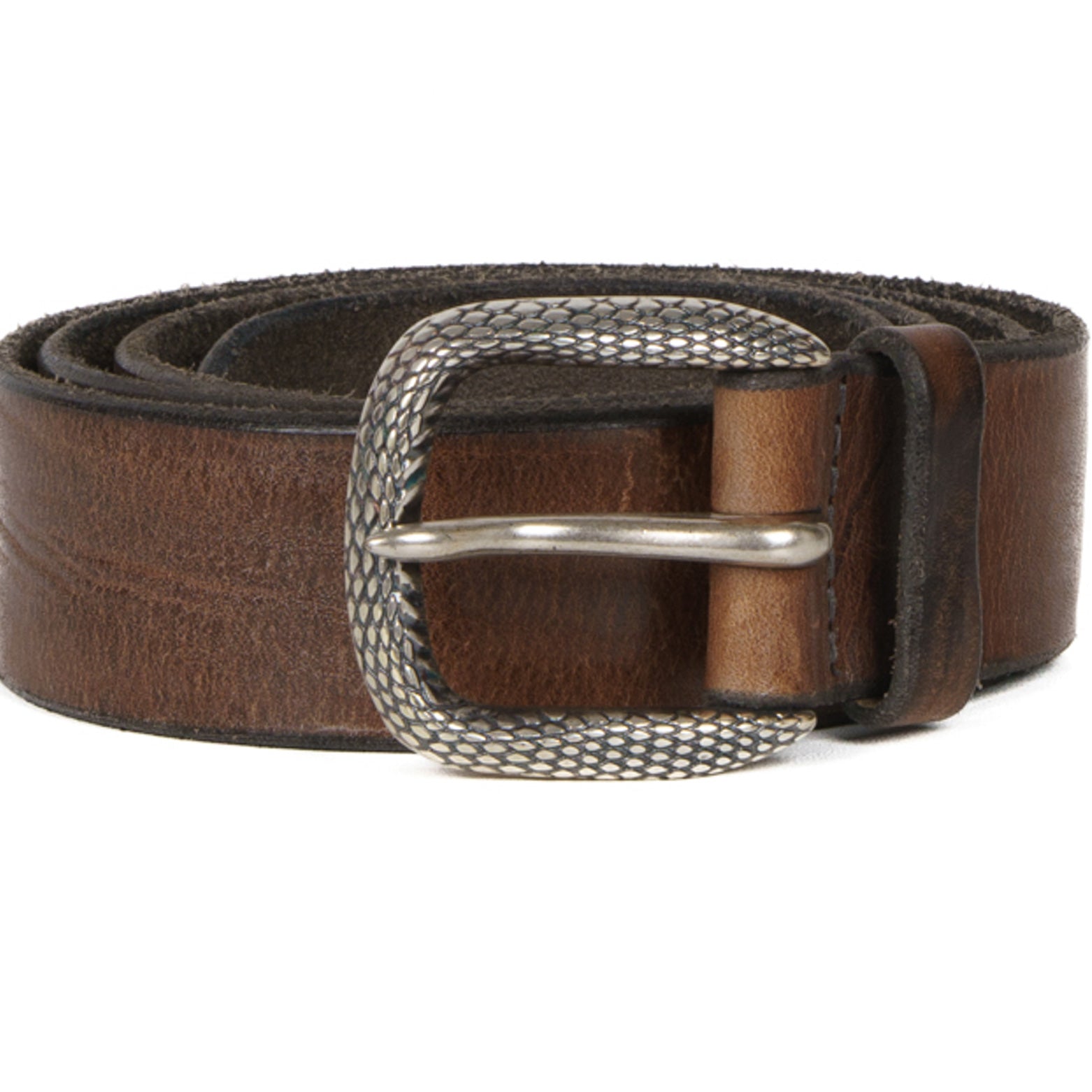 Cintura marrone di ORCIANI in pelle con fibbia in acciaio con lavorazione texas.