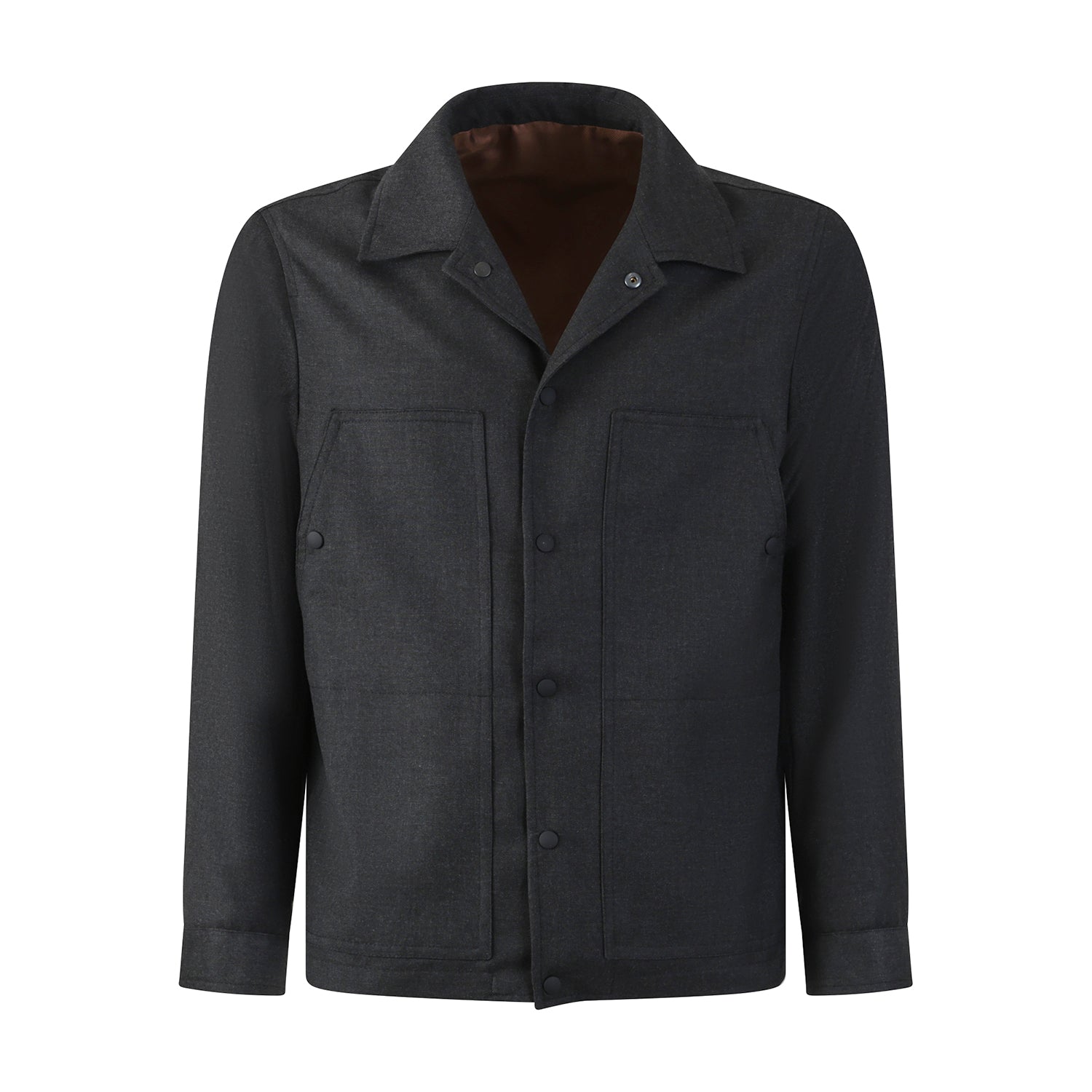 Overshirt grigia di OUTFIT in misto lana con chiusura con bottoni, collo camicia, 4 tasche a filetto.