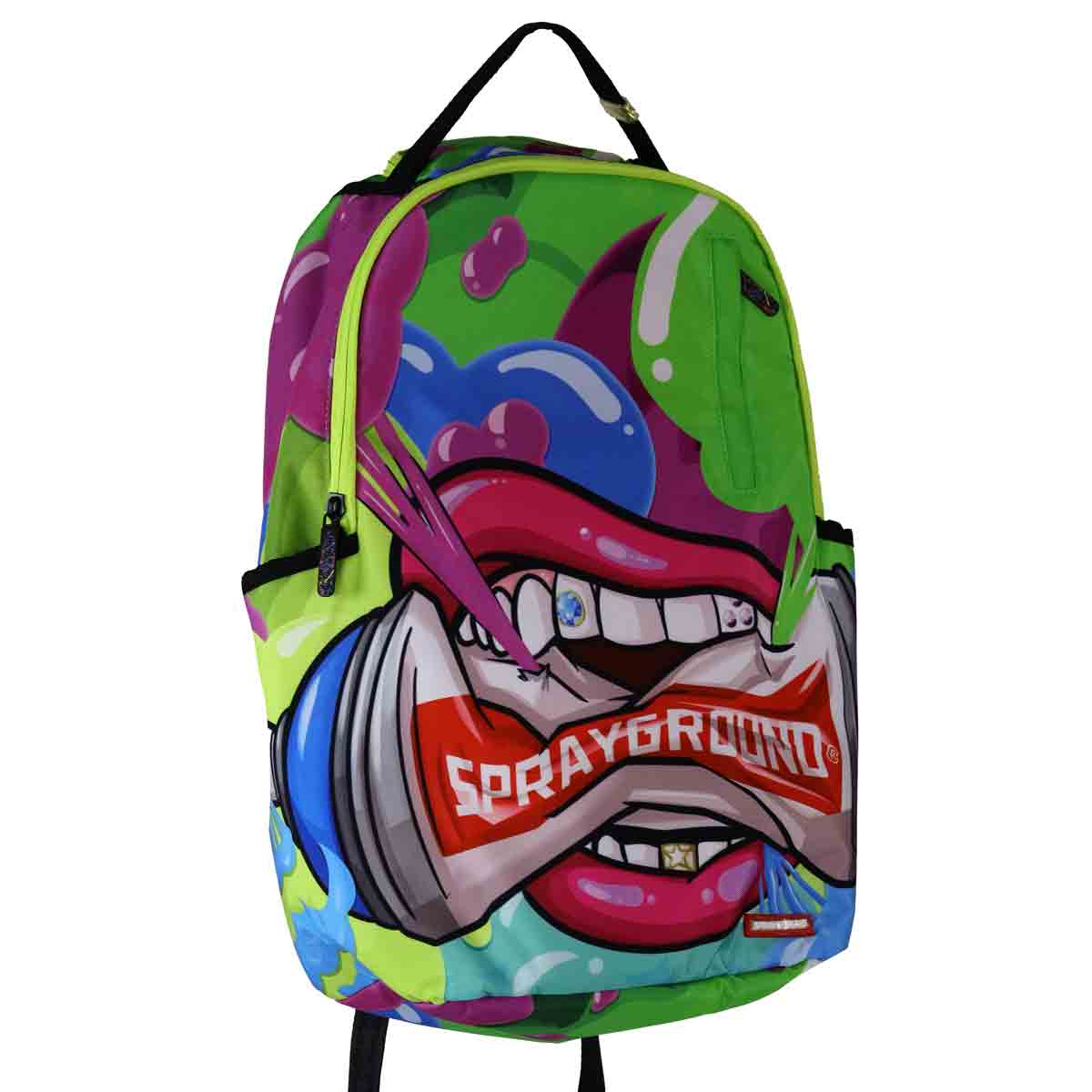 Zaino multicolor di SPRAYGROUND in tessuto con stampa multicolor e apertura con zip superiore. Misure 32x45x18cm.