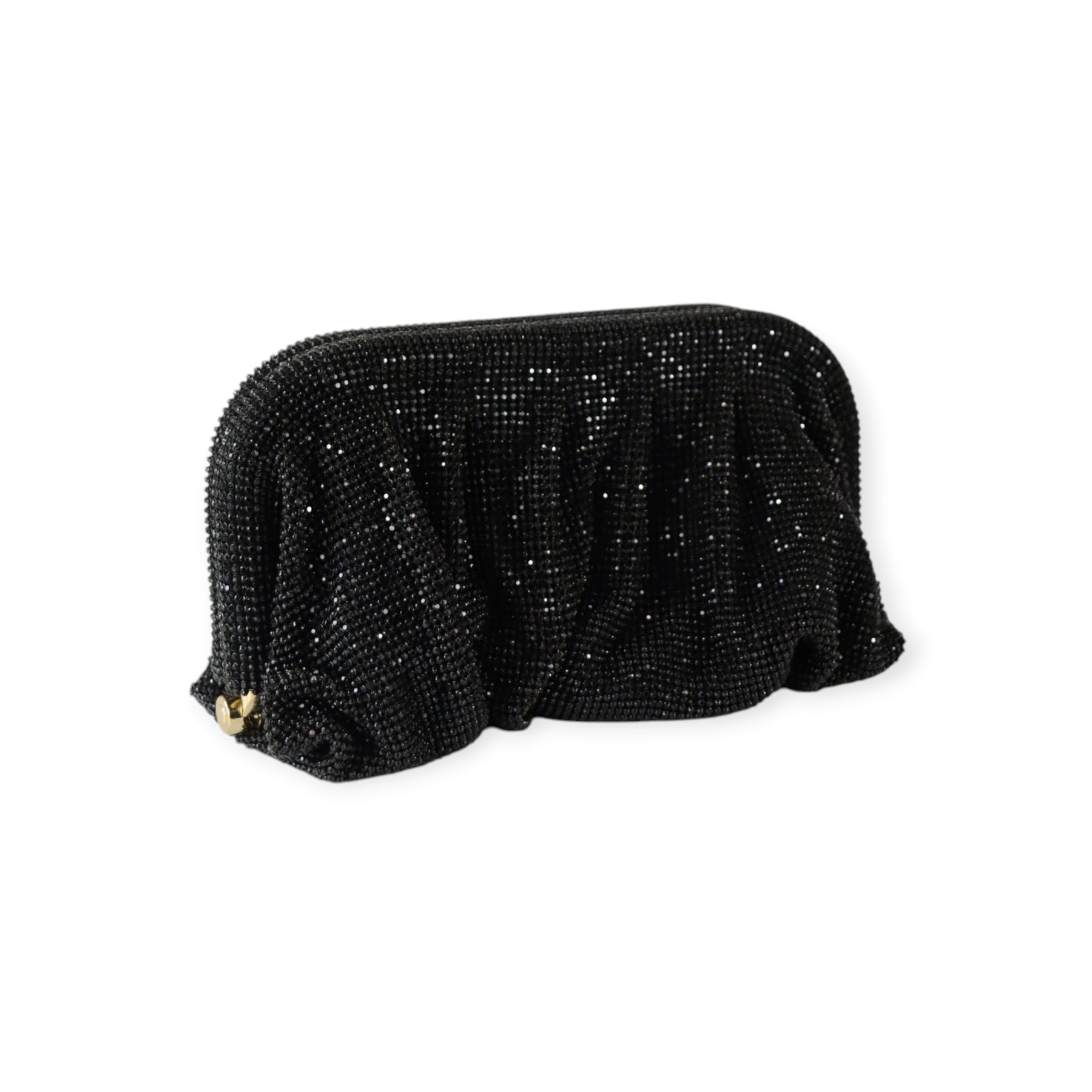 Clutch MARYON nera di VELVET in tessuto in cristalli con con chiusura in metallo e tracollina interna in metallo. Misura 12x24x5 cm.